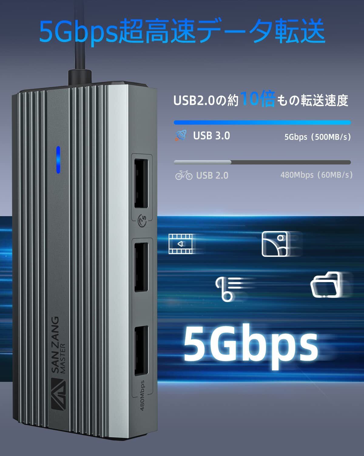 【数量限定】SAN ZANG MASTER USB C ハブ HDMI 4K 解像度 USB-C ハブ 5-in-1 PD充電 60W出力 USB3.0ポート搭載 5Gbps高速転送 USB2.0ポート搭載 ChromeBook/Air/iPad Pro/Type-C Laptop対応 テレワーク リモート 在宅勤務 | gsmshop