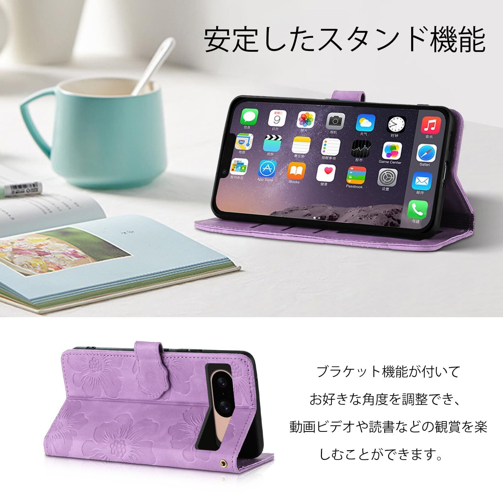 【特価商品】Google pixel 8 ケース 手帳型 カバー スマホケース 人気 おしゃれ グーグルピクセル8 ケース 手帳型 pixel8 ケース 手帳型 高級PUレザー 全面保護 お洒落 かわいい 美しい桜の柄 グーグル ピクセル 8 ケース カバー pixel8 手帳ケース カード収納 スタンド機能 マグネット式 google pixel 8 携帯カバー 財布型【6.17インチ】パープル | gsmshop