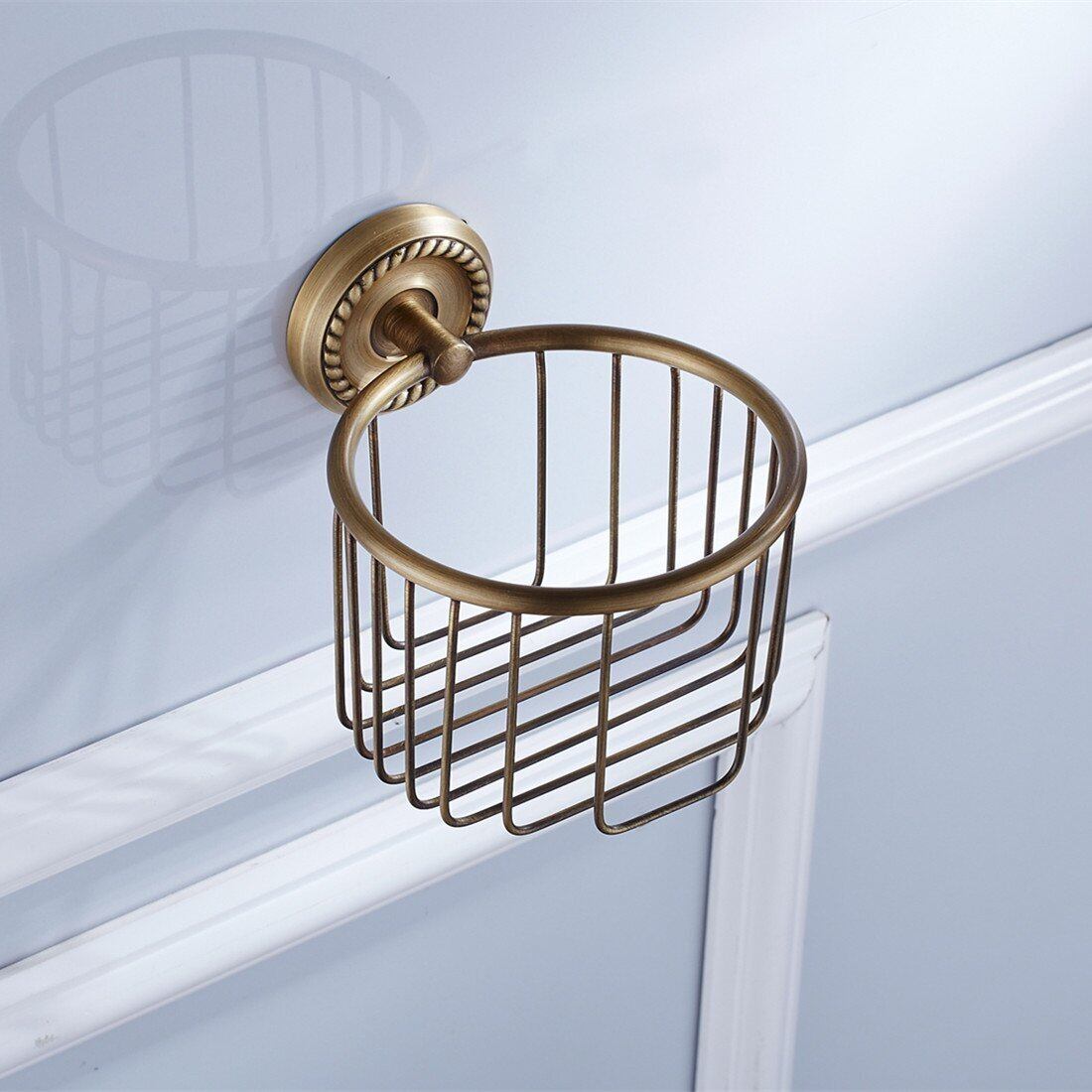 【在庫セール】Bathfirst おしゃれ トイレットペーパーバスケット真鍮製 アンティークブロンズ仕上げ 壁掛け ネジ取付 防錆 バスルームアクセサリー ティッシュホルダー トイレットペーパーホルダー 紙巻器 キッチン トイレ 収納 | gsmshop