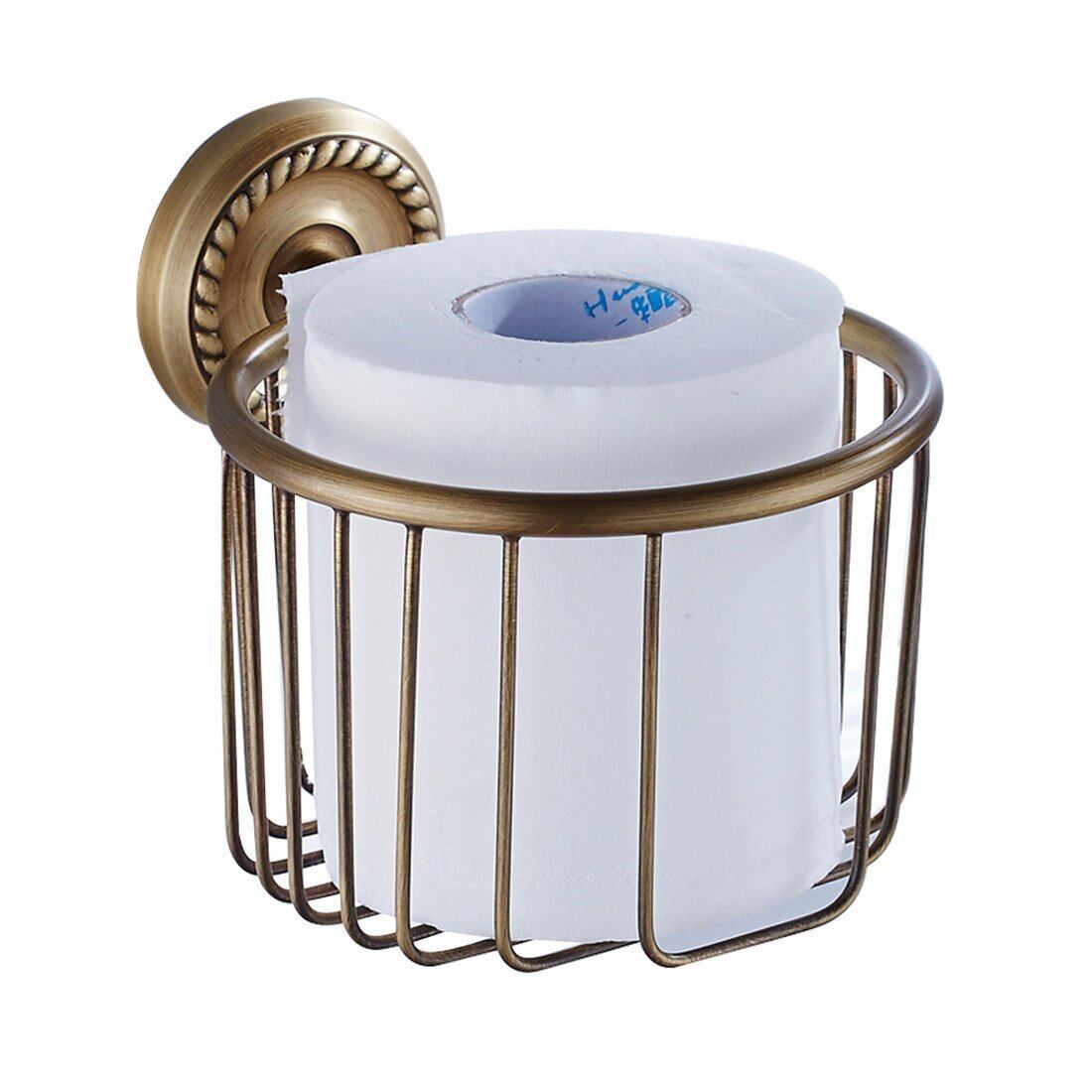 Bathfirst おしゃれ トイレットペーパーバスケット真鍮製 アンティークブロンズ仕上げ 壁掛け ネジ取付 防錆 バスルームアクセサリー ティッシュホルダー トイレットペーパーホルダー 紙巻器 キッチン トイレ 収納