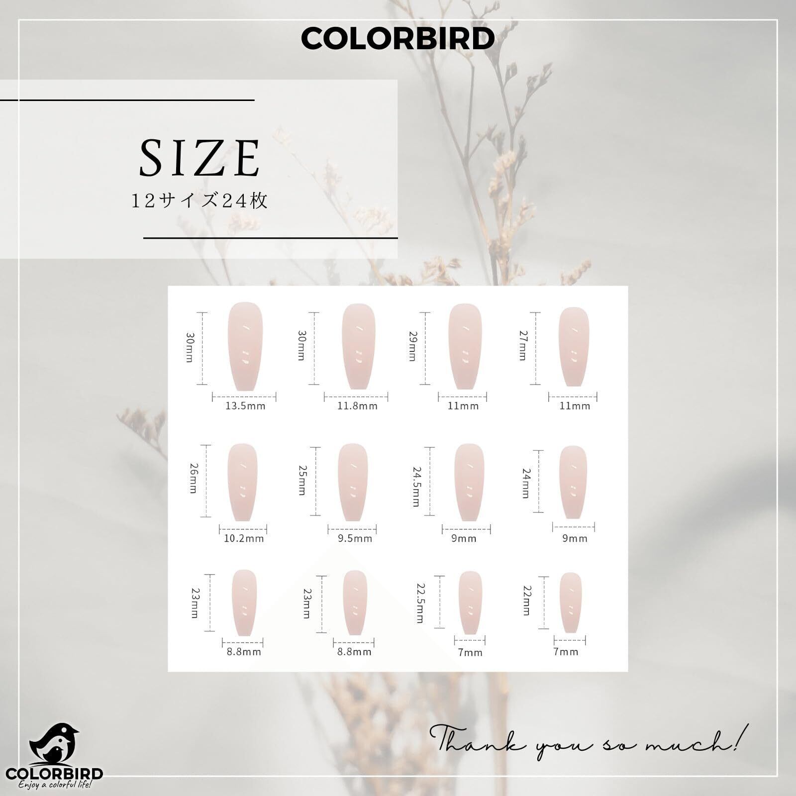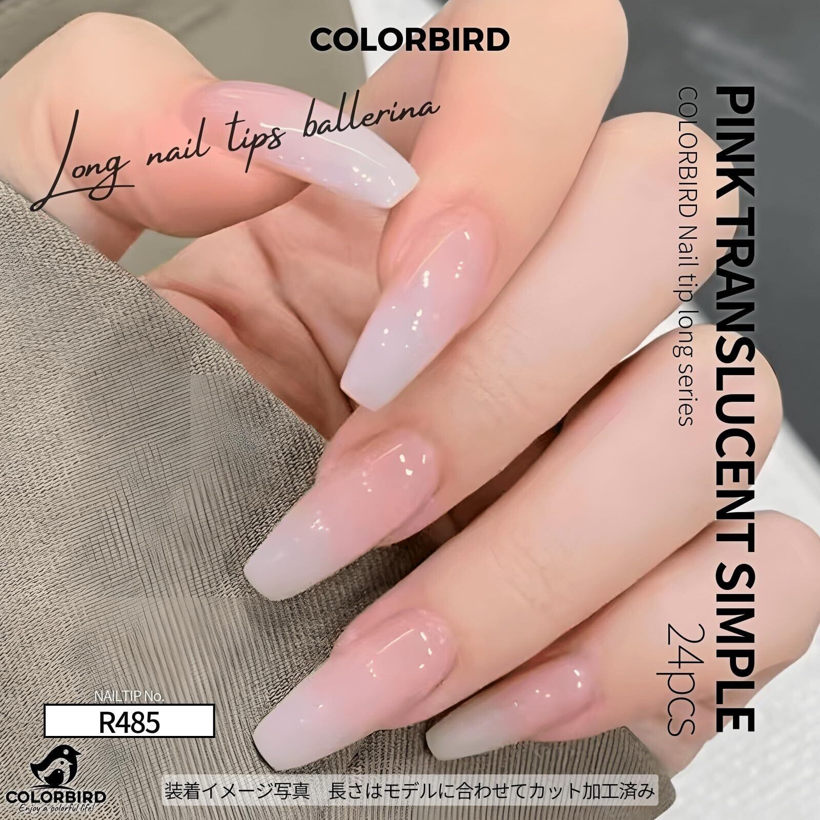 COLORBIRD ネイルチップ ロング 24枚 ピンク ネイル 付け爪 チップ 短め 可愛い バレリーナ (R485)