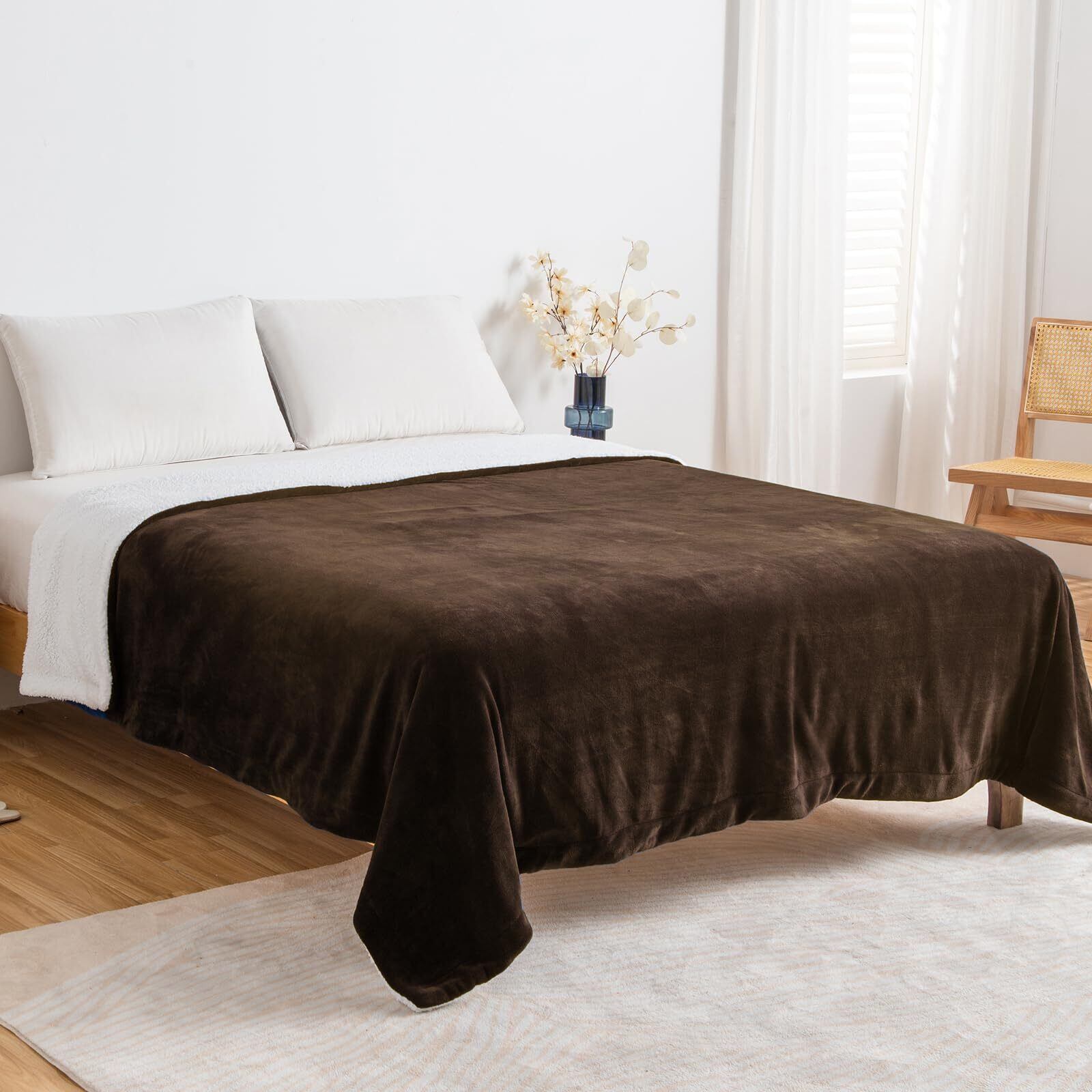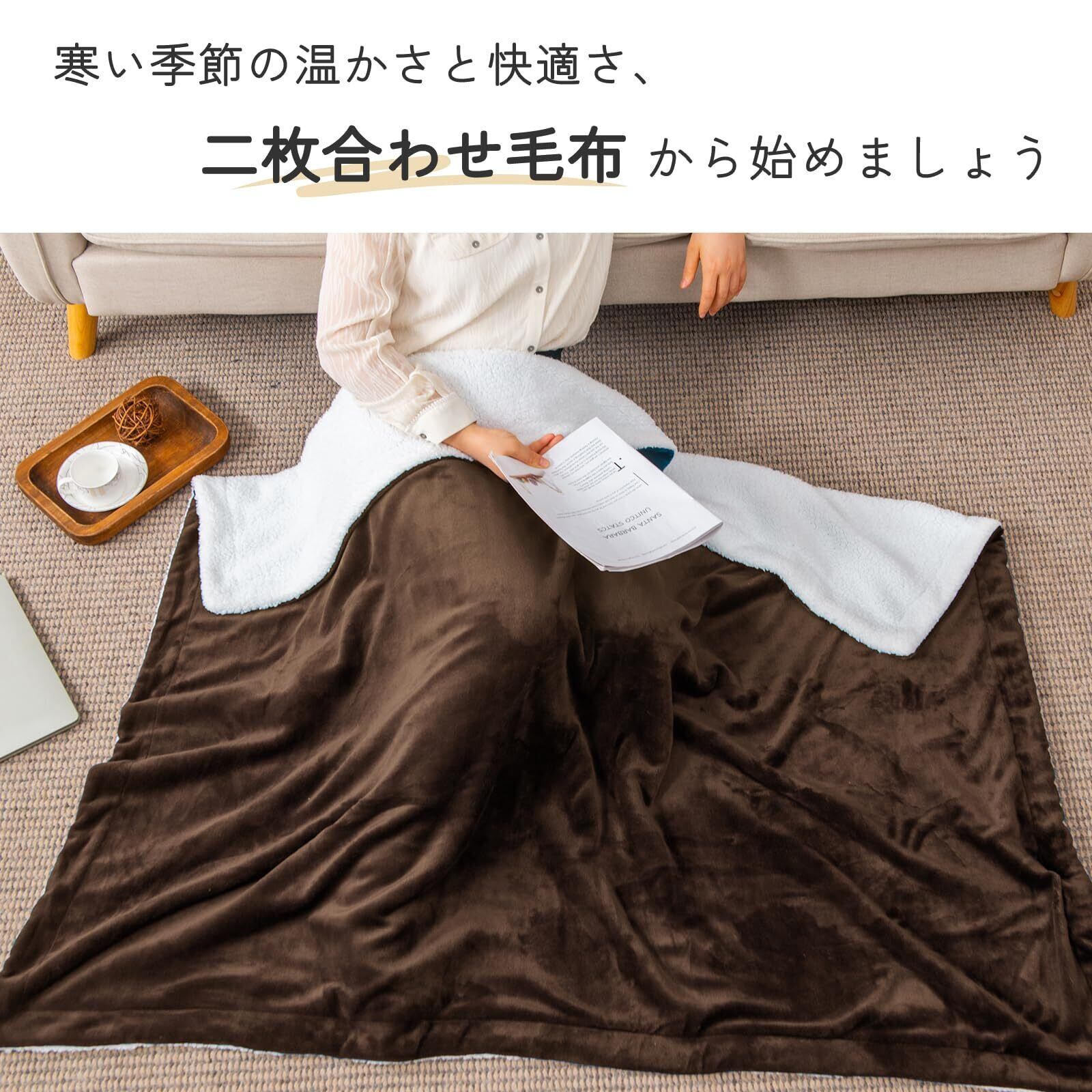 SE 毛布 シングル 冬用 厚手 二枚合わせ ブランケット ふわふわ あったか マイクロファイバー フランネルXシープボア 静電気防止 洗える 140X200cm ブラウン 「SE Softexly」