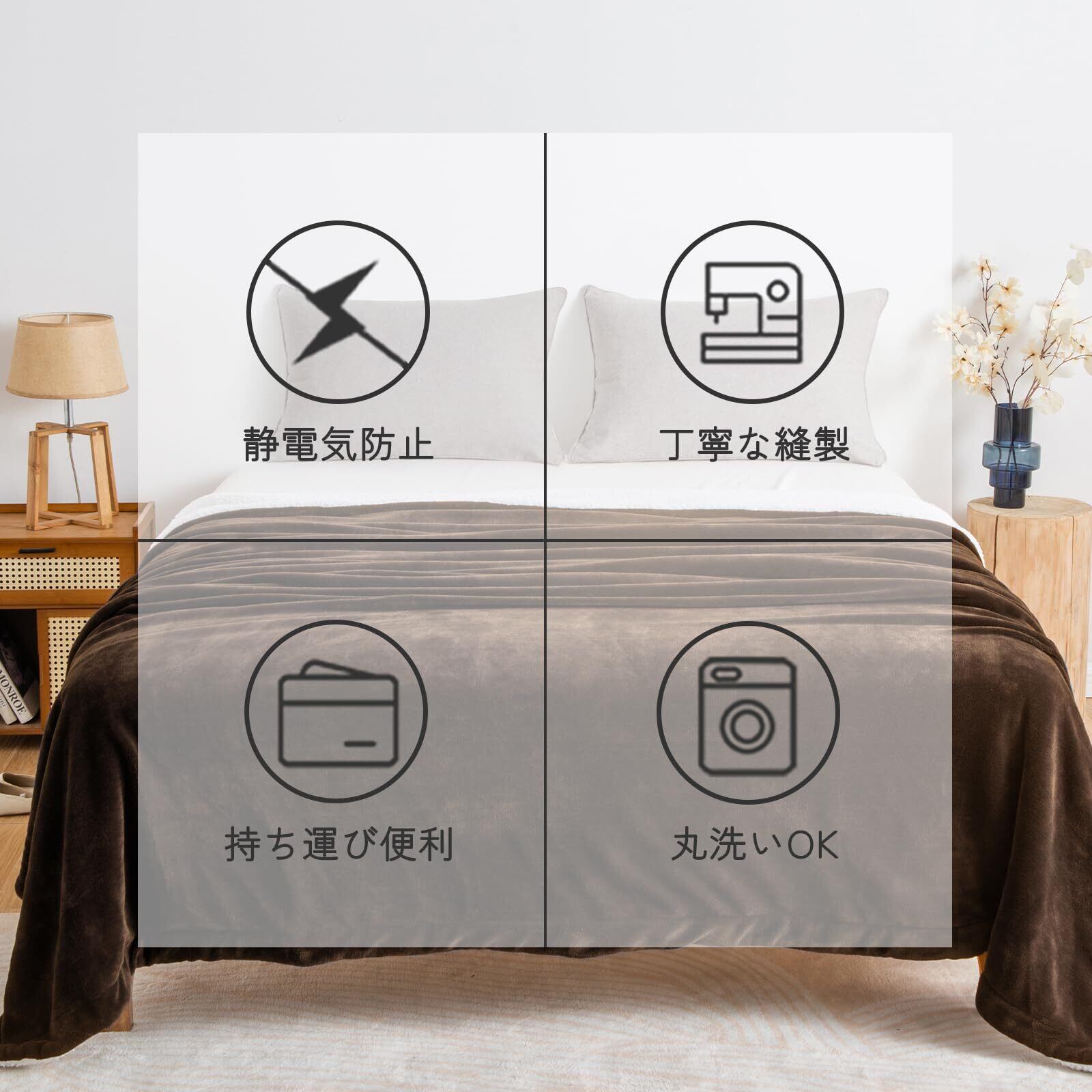 【数量限定】SE 毛布 シングル 冬用 厚手 二枚合わせ ブランケット ふわふわ あったか マイクロファイバー フランネルXシープボア 静電気防止 洗える 140X200cm ブラウン 「SE Softexly」 | gsmshop