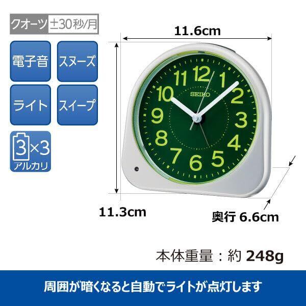セイコークロック 目覚まし時計 置き時計 アナログ 夜でも見える 銀色メタリック 113×116×66mm KR525S