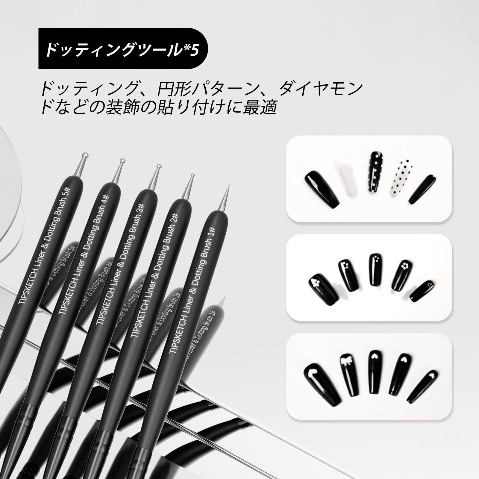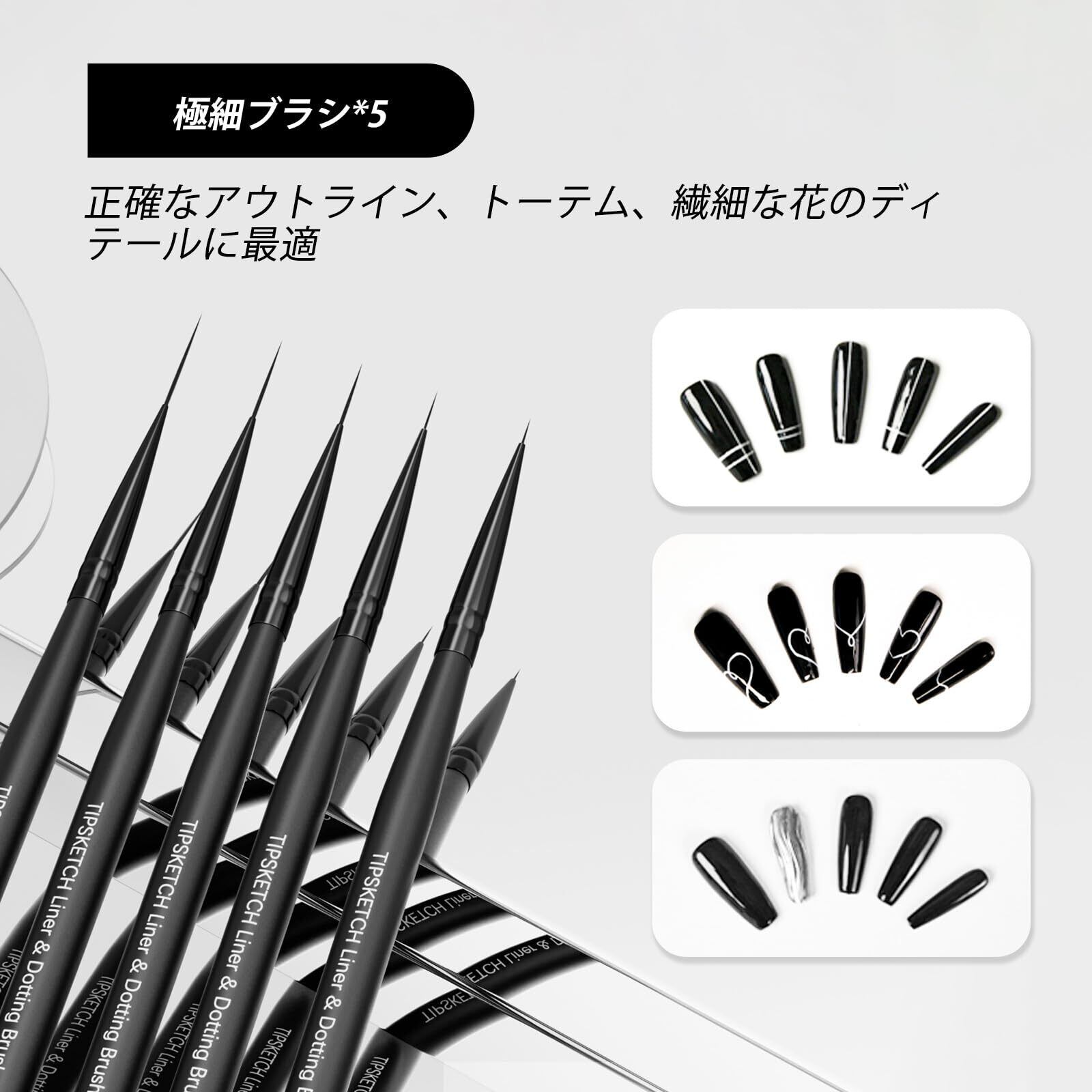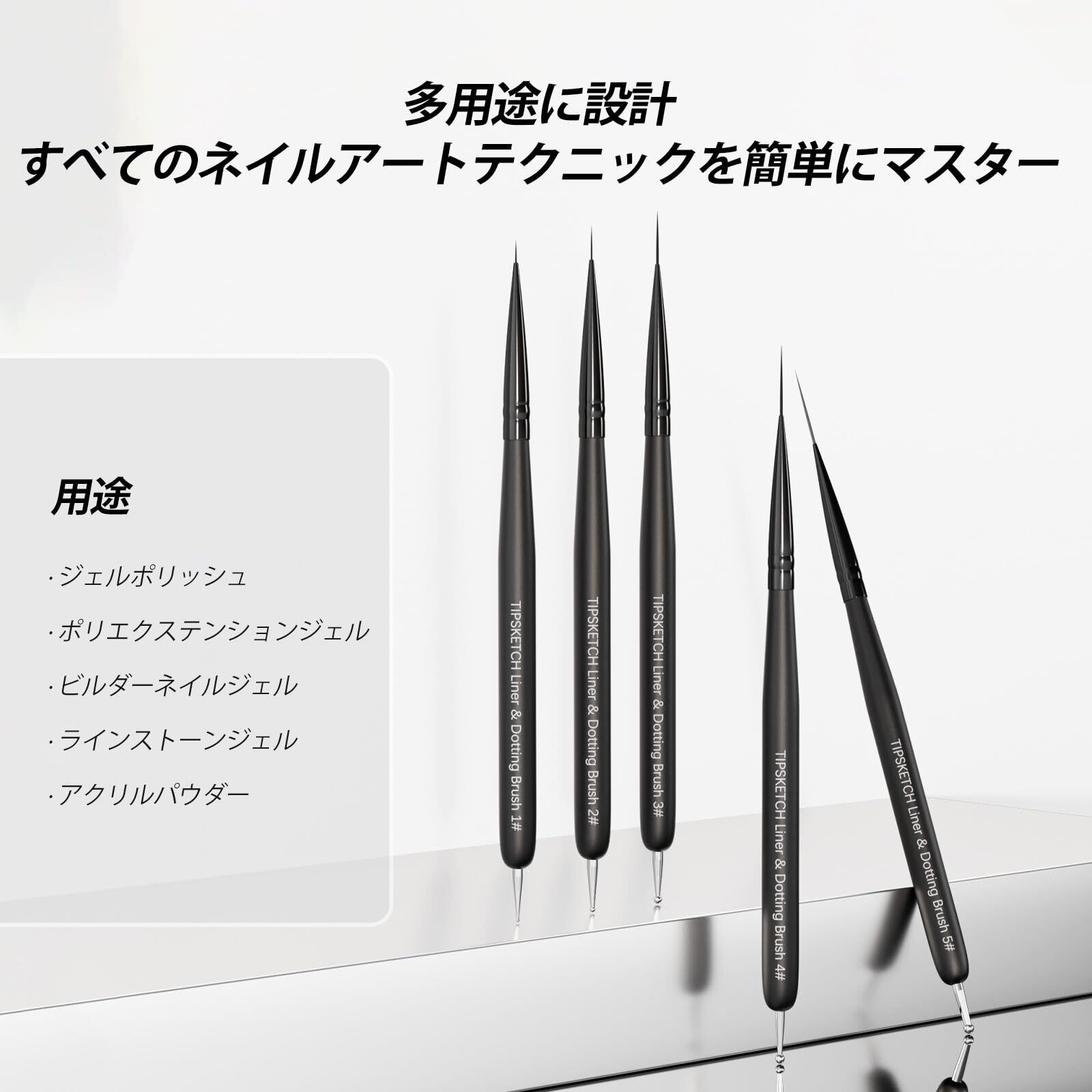 Tipsketch ジェルネイル筆 極細&ドットジェルネイルキット ネイルブラシ5点セット 爪ブラシ アクリルリキッド ジェルネイル絵描きブラシ ジェルネイル絵描きブラシ 日本製ナイロン使用