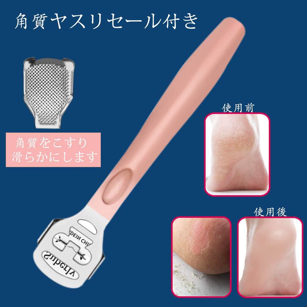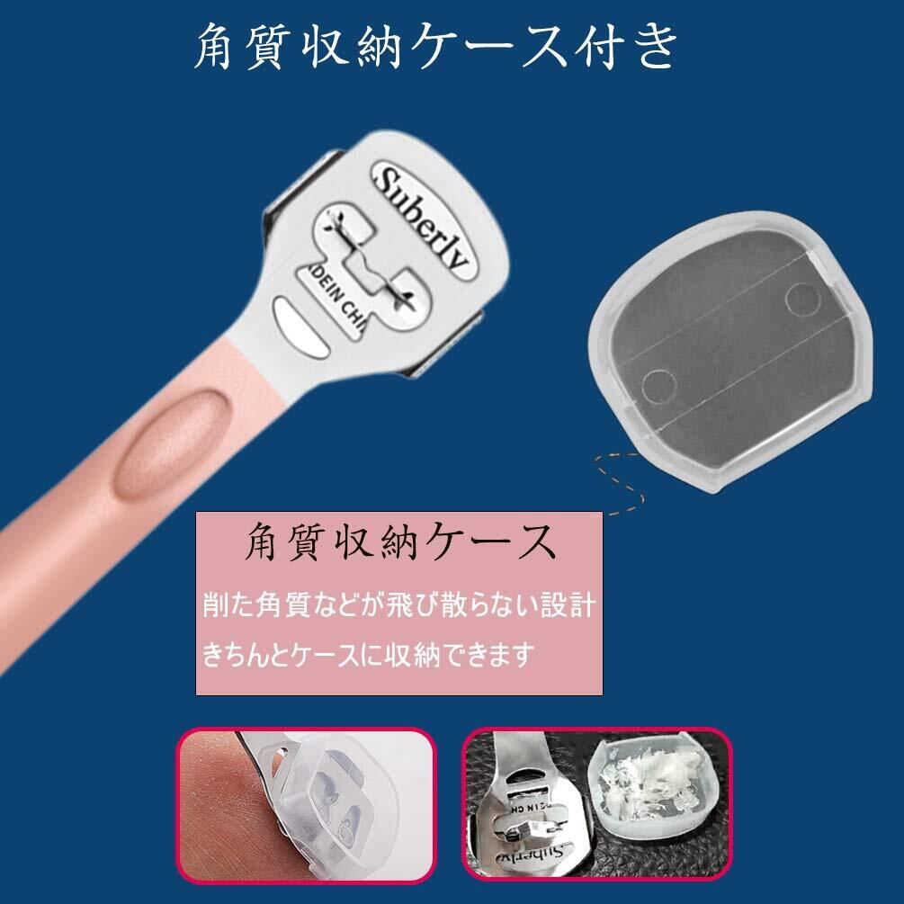 【長く使えるステンレス製】オールステンレスの安定感としっかり感、適度な重さが使う方に安心して使用いただける角質削りです。それに、単体でも10枚500円の替刃と角質削り本体に1枚の計11枚セットにしてありますので非常に経済的です。