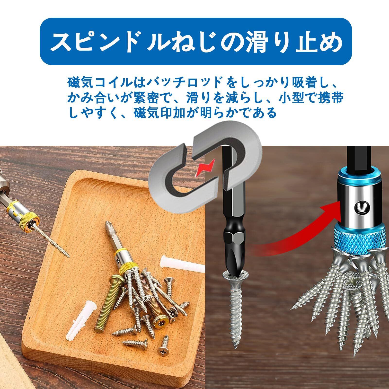 強力な磁力: マグネタイザーはドライバービットに装着することで、強力な磁力を提供し、ネジをしっかりと吸着します。作業効率を飛躍的に向上させます。