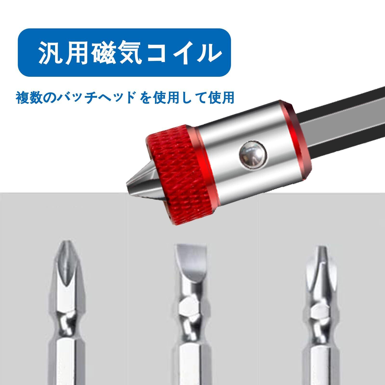 - 広範な用途: マグネタイザーはコンパクトで持ち運びがしやすく、あらゆる種類のスクリュービットに適用できます。電動ドライバーやホルダー付きドリルにも使用可能です。