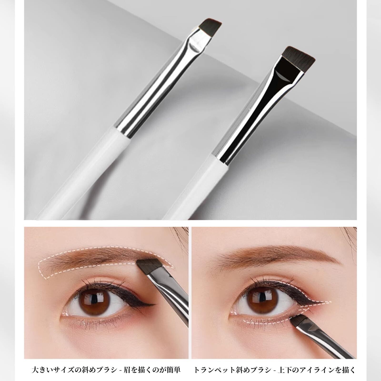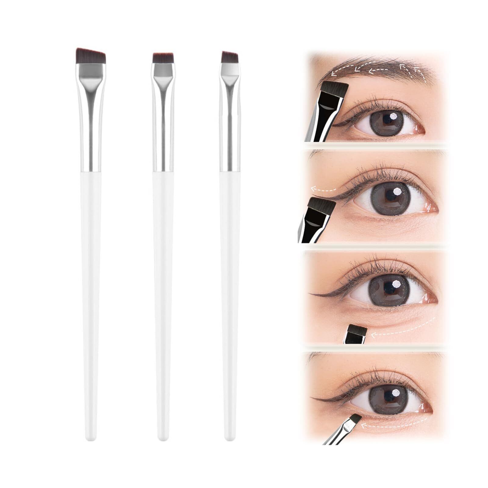 Doyime アイライナーブラシ (3本セット) メイクブラシ 鎌型アイライナーブラシ 精密アイライナーブラシ アイブロウブラシ 熊野筆 コスメアップ アイシャドーブラシ ノーズシャドウブラシ 化粧筆 斜め 肌に優しい 使いやすい 柔らかい 優しい 極細 白い