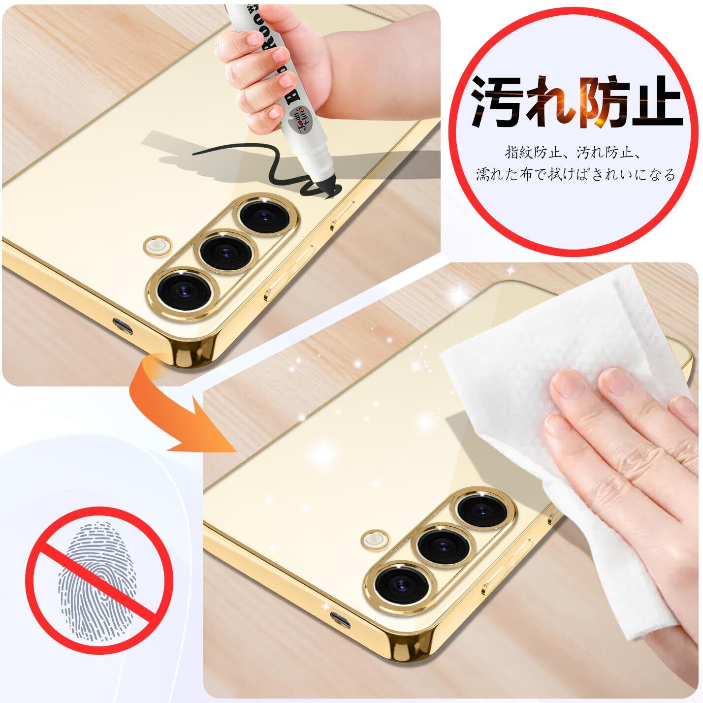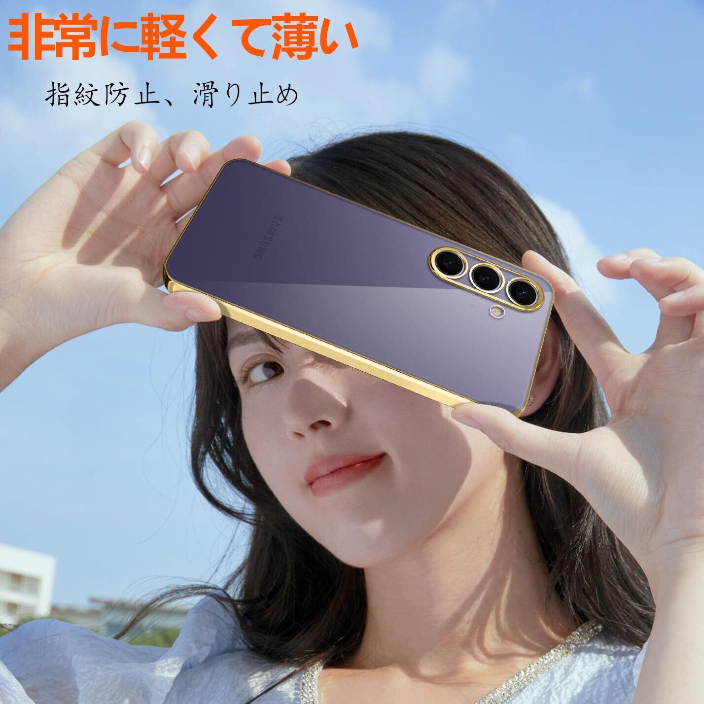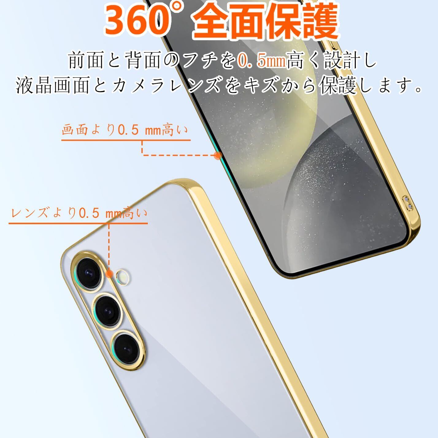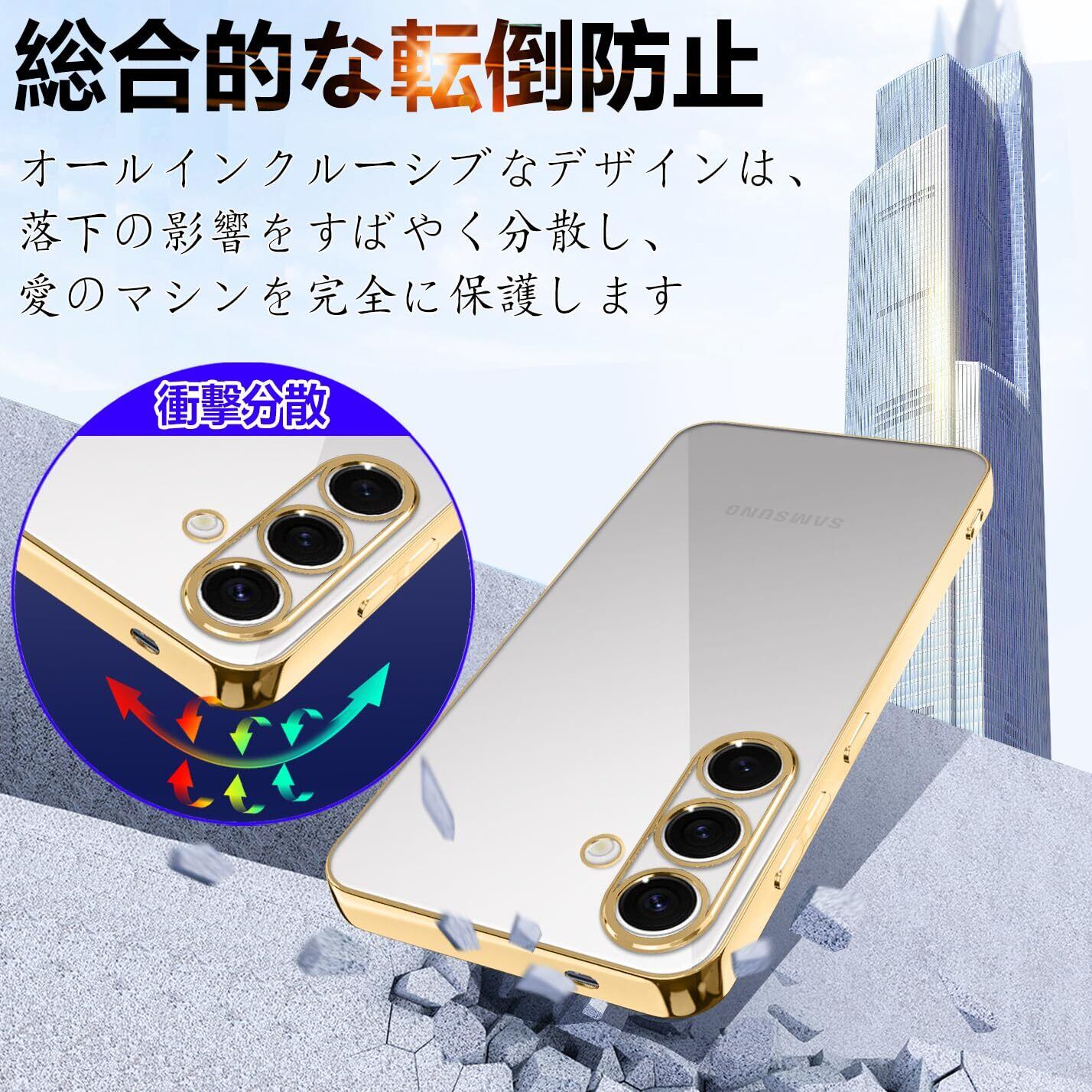 Galaxy S24 用 ケース クリア 金 ギャラクシーs24 SC-51E SCG25 カバー 透明 耐衝撃 軽量 薄型 tpu 背面クリア 金縁 メッキ加工 スマホケース ソフト ストラップホール付き ワイヤレス充電対応(galaxyS24, ゴールド)