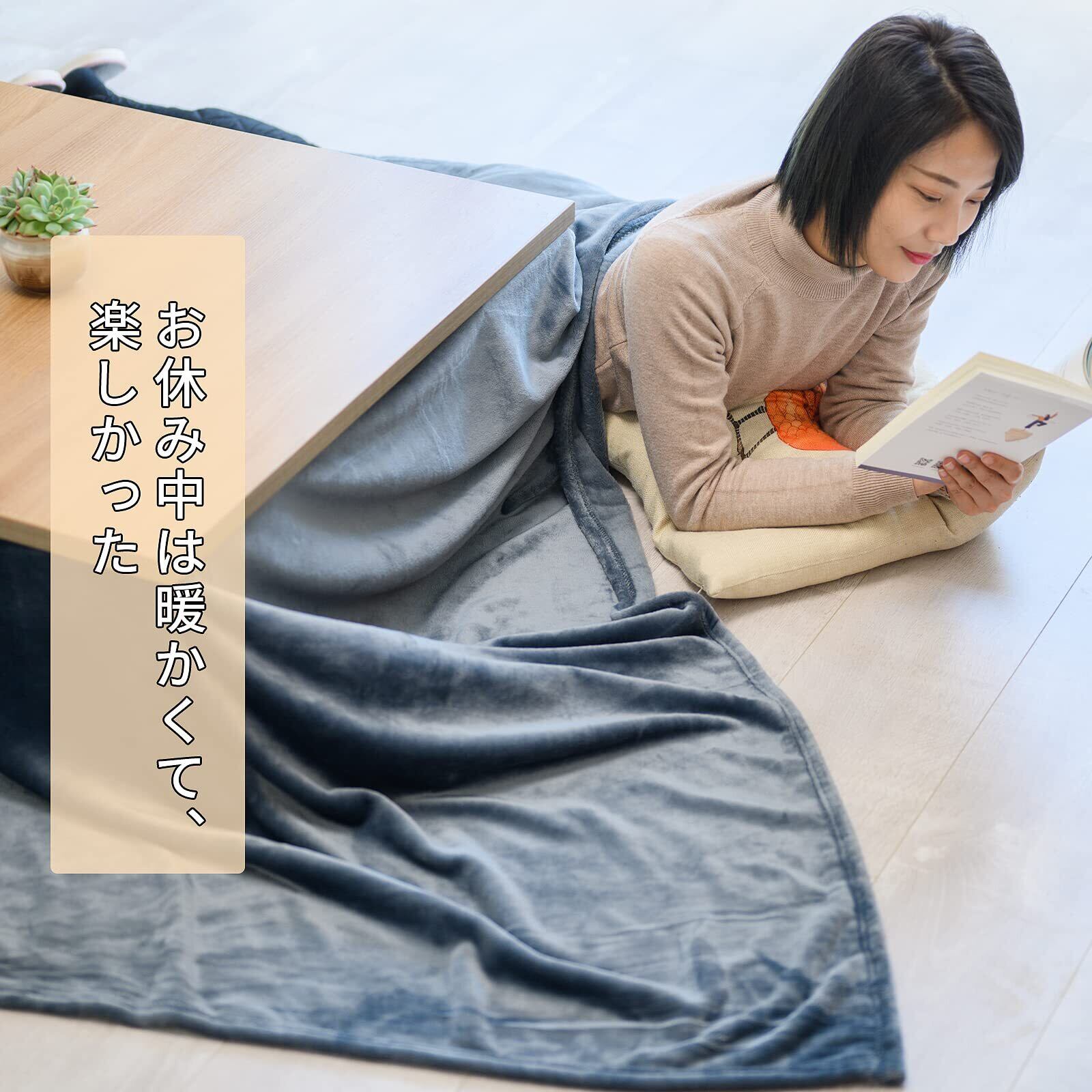 【軽量・省スペースデザイン】標準型のこたつ布団に比べ、見た目スッキリです。こたつ中掛け毛布は軽量で薄いため、持ち運びや収納がしやすく、こたつ掛け布団と重ねたご使用に適しています。