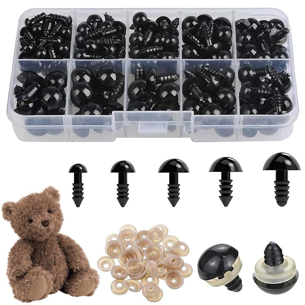 【2022最新】ぬいぐるみ目 人形の目 丸型 目玉 約100個入りドールアイ ぬいぐるみ 黒目 動物 人形 おもちゃ 手芸パーツ 手作り DIY 縫製 パーツ 材料 5サイズ(6mm/8mm/9mm/10mm/12mm)ワッシャー付き ブラック | gsmshop