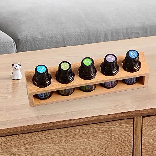 ナチュラルアロマオイルスタンド 天然竹製エッセンシャルオイルホルダー 15ml精油に適用する収納ケース (5仕切り)