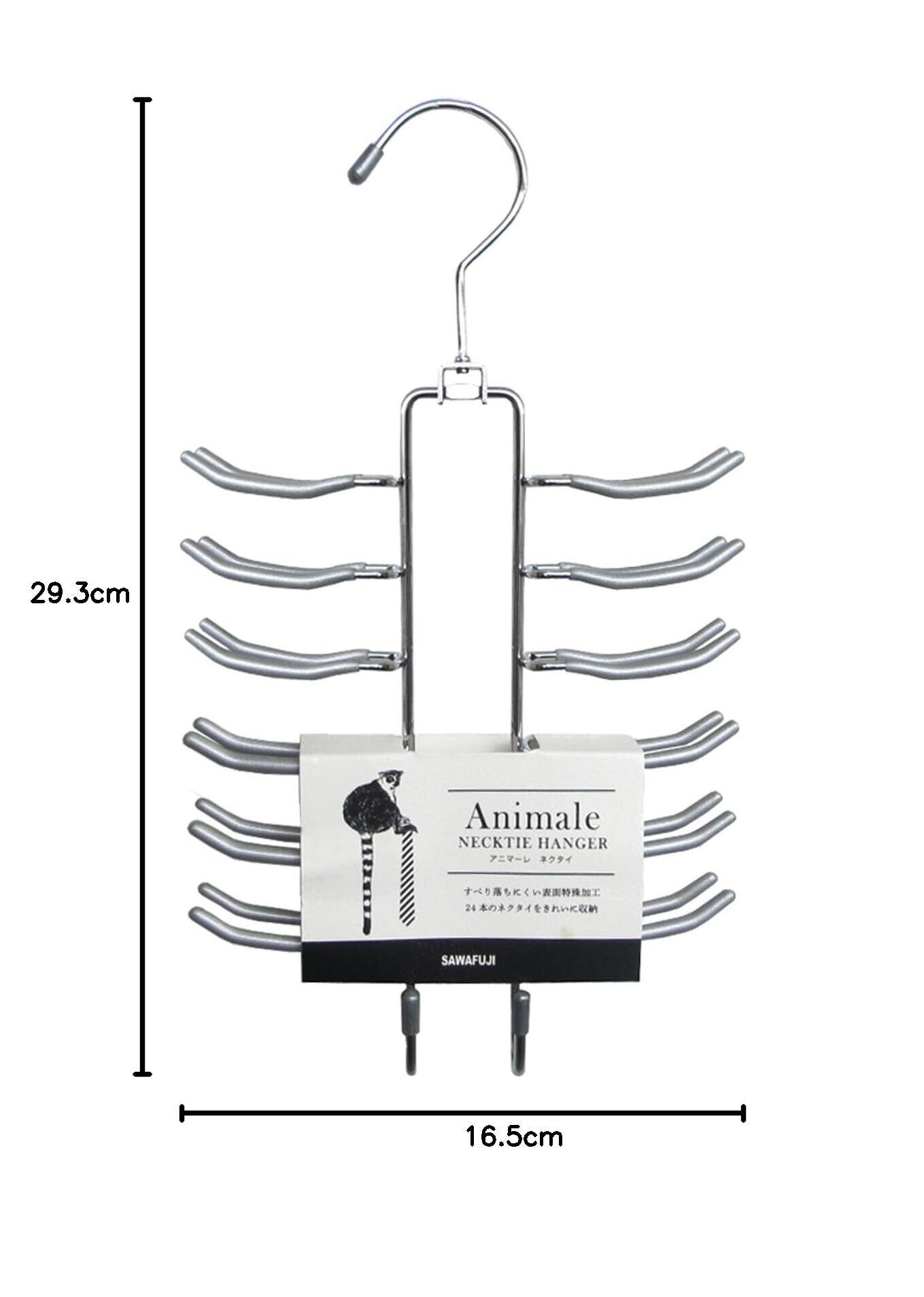 サワフジ ネクタイハンガー アニマーレネクタイハンガー シルバー 24本掛け 省スペース 滑らない 部屋 室内 干し おしゃれ 収納 多機能 跡がつかない クローゼット AN-04