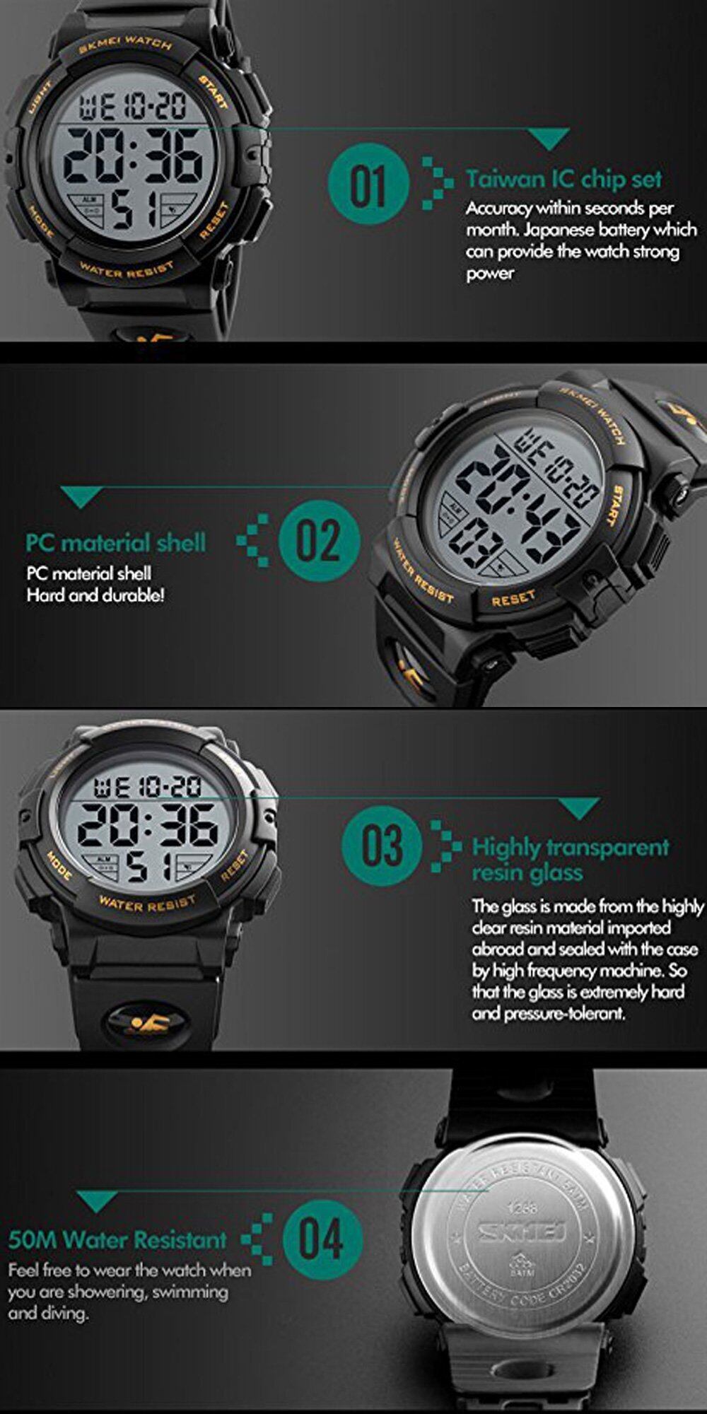 Timever(タイムエバー)デジタル腕時計 メンズ 防水腕時計 led watch スポーツウォッチ アラーム ストップウォッチ機能付き 防水時計 文字が大きくて見やすい 日本語説明書付き