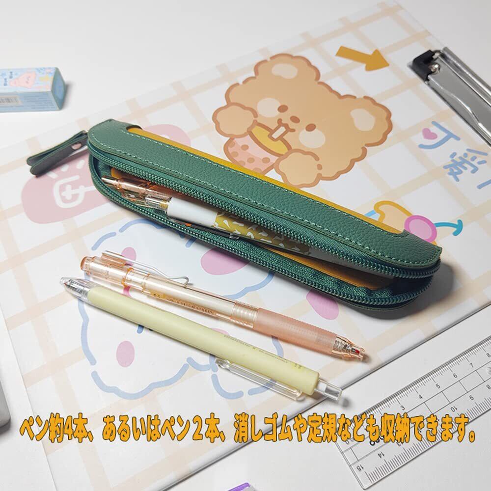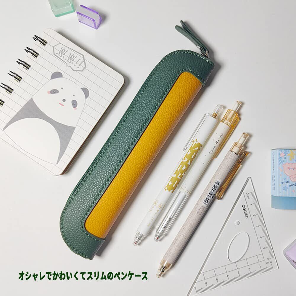 【在庫セール】グリーン ペンケース ミニ ペンポーチ 革 筆箱 シンプル かわいい コンパクト 大人 女性 ふでばこ
