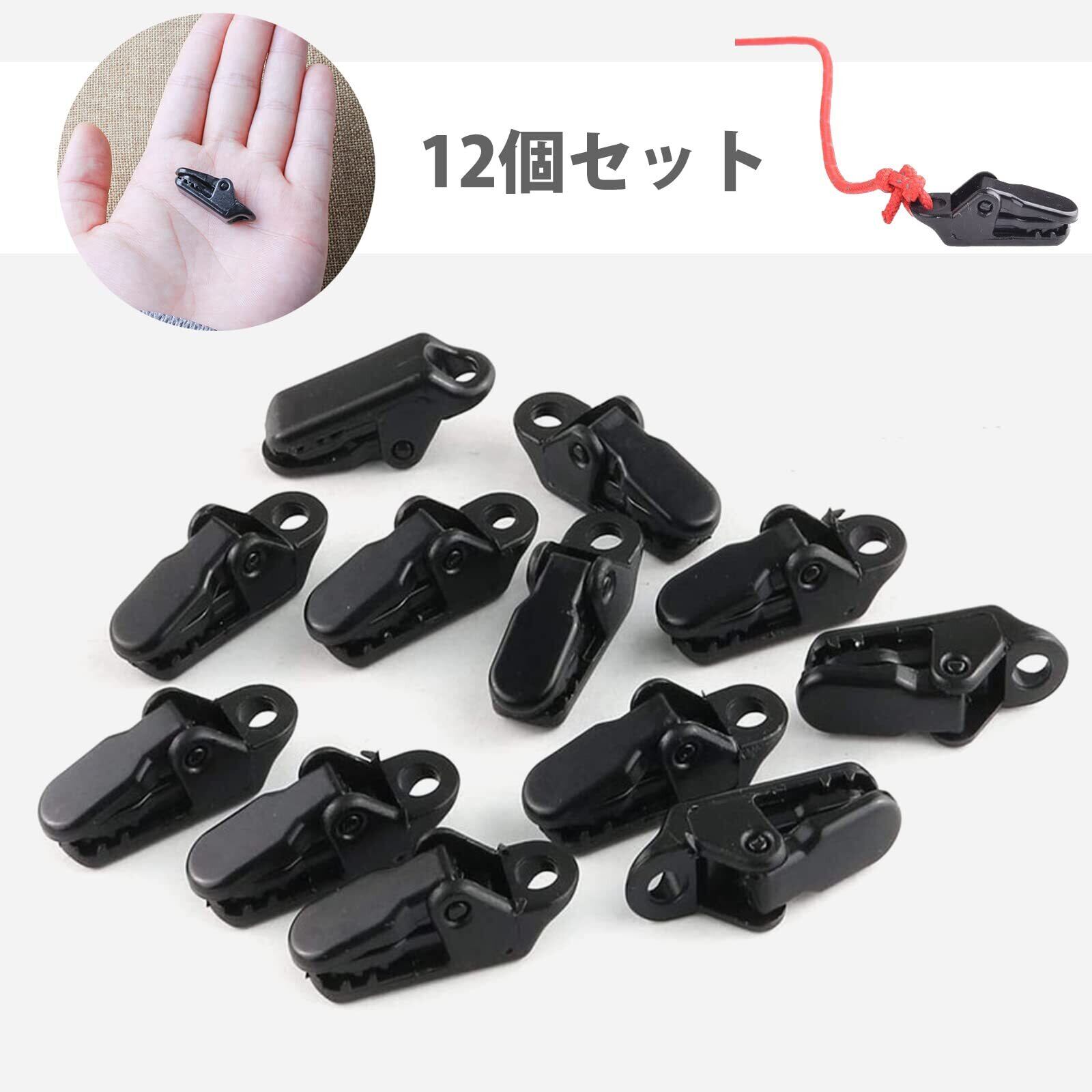 【特価セール】D.SigiYa テントクリップ 強力 小型 12個入 キャンプ固定用 タープクリップ プラスチック 防風 取り付け簡単 テントクランプ アウトドア 屋外 ピクニック アリゲーター型 固定クリップブラック | gsmshop