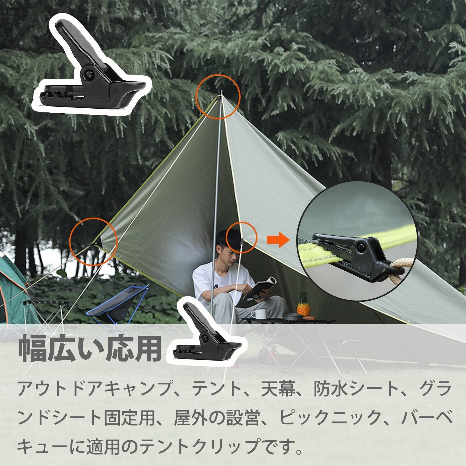 3、【使用簡単】確実につかむアリゲーター型、ダブル固定型、押し型、簡単にクリップを調整できます。大きな引っ張り力に耐えることができ、それをテントにバックルした後に緩んではいけません。