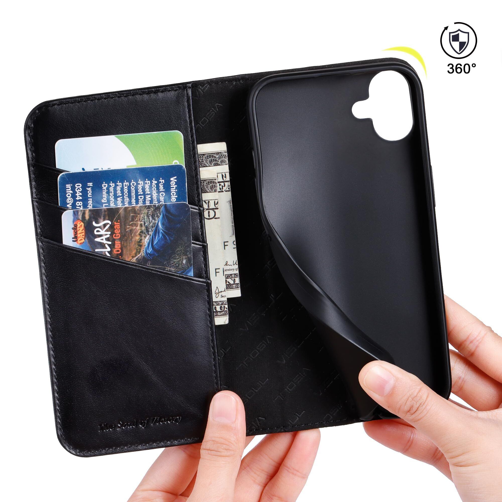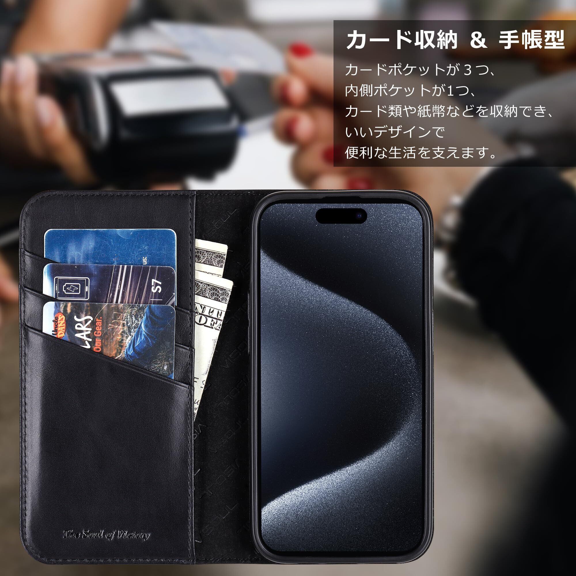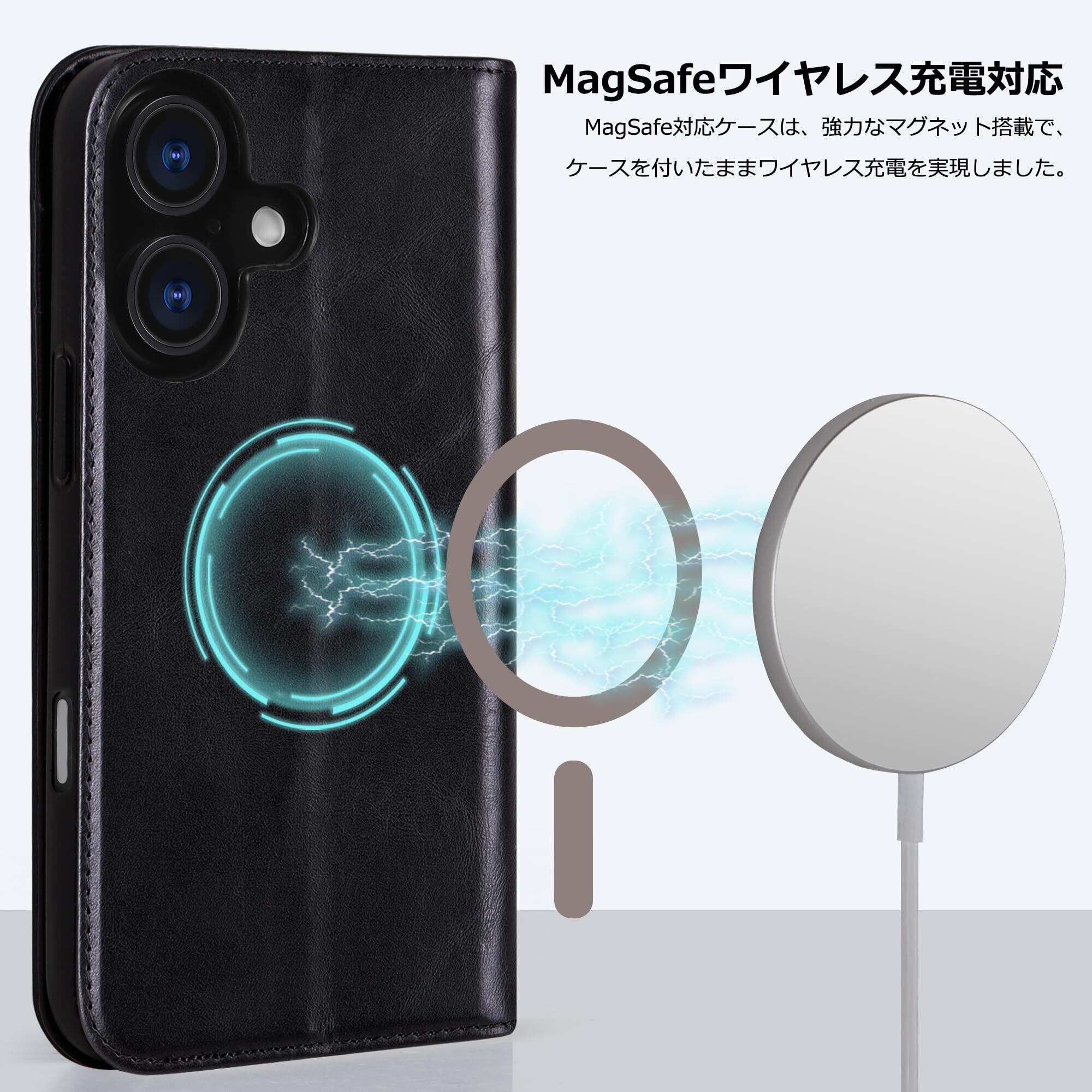 VISOUL iPhone16 対応 ケース 手帳型 本革 スマホケース アイフォン16 レザーMagSafe対応 アイホン16 横置きスタンド機能 カード収納 あいふぉん16 携帯ケース 全面保護 マグネット 耐衝撃に強いTPU素材カバー 6.1インチ対応 アイフォン16 ブラック