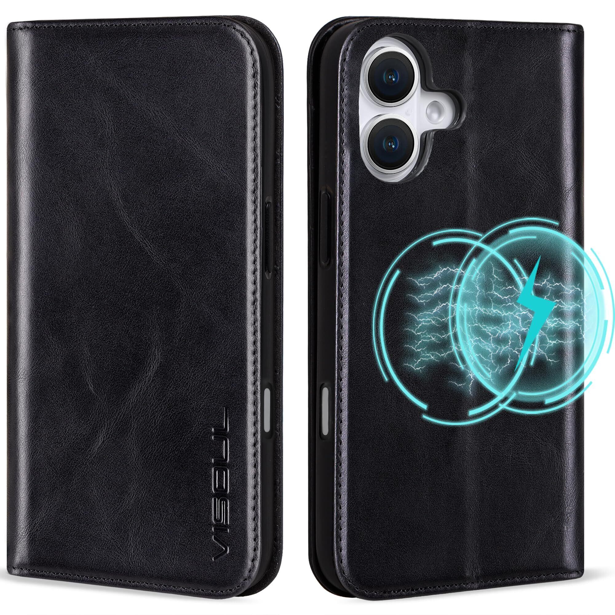 【人気商品】VISOUL iPhone16 対応 ケース 手帳型 本革 スマホケース アイフォン16 レザーMagSafe対応 アイホン16 横置きスタンド機能 カード収納 あいふぉん16 携帯ケース 全面保護 マグネット 耐衝撃に強いTPU素材カバー 6.1インチ対応 アイフォン16 ブラック | gsmshop