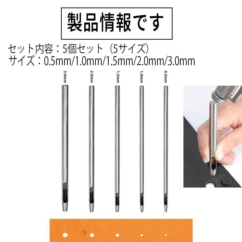 【2022最新】穴あけポンチセット レザーパンチ ベルトパンチ ハトメ抜き 皮ポンチ 5本セット シルバー高炭素鋼 0.5mm/1.0mm/1.5mm/2.0mm/3.0mm 丸形 円型 打ち具 ベルトポンチ DIY 手作り 工具 革製品 | gsmshop