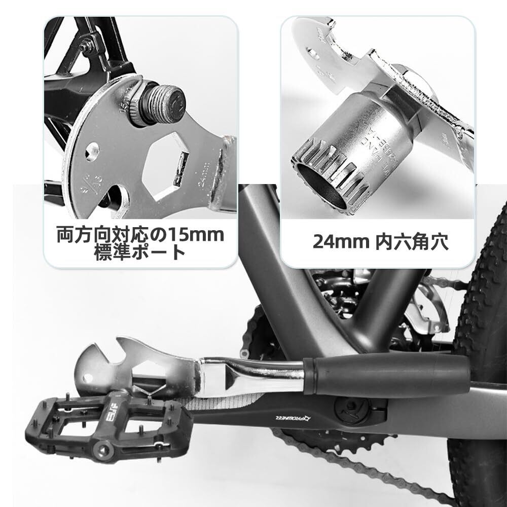 4. 両方向対応の15mm標準ポート+24mm 内六角穴:さまざまな一般的なペダルの取り外しに対応し、さまざまな24mmソケットと組み合わせて使用できます。