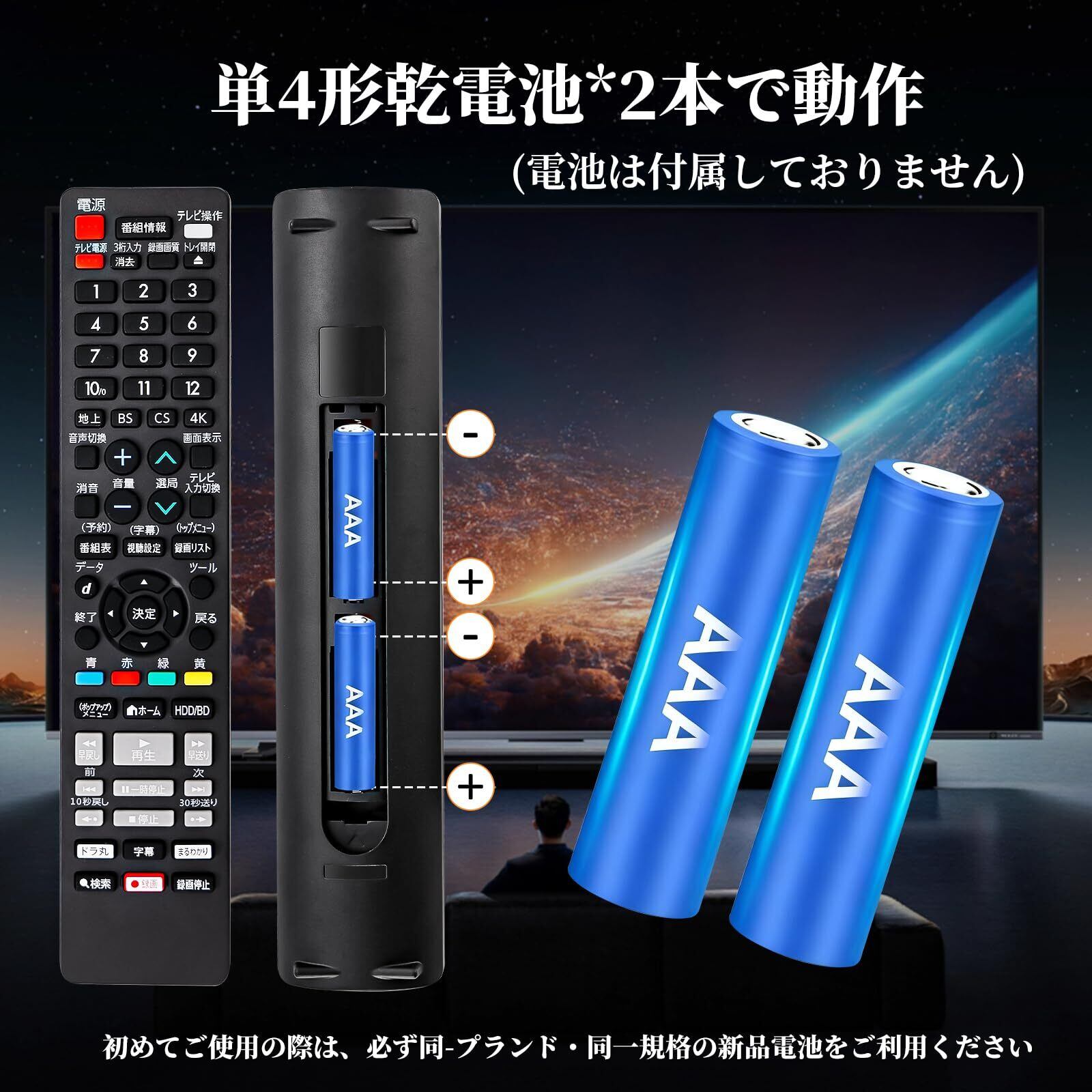 【操作設定が不要】このブルーレイディスクレコーダーリモコンに電池を入れれば、設定する必要がなく、すぐに使えるので、特にお年寄りやお子様にはおすすめです。 使い勝手もよく、交換後すぐに使うことができます。この商品はリモコン代わりですが、オリジナルリモコンのすべての機能が正常に動作します。パッケージには説明書がありませんので、予めご了承ください。 * シングル3電池2本パック(別売)使用。