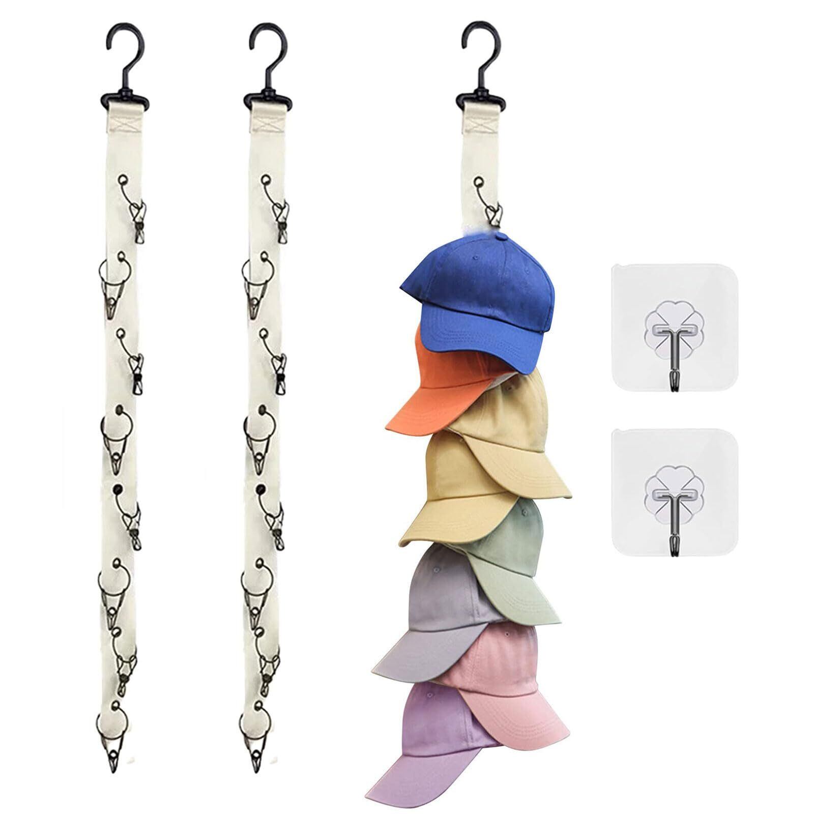 パッケージ内容:帽子オーガナイザー2個と粘着フック2個をお届けします。各野球帽オーガナイザーにはステンレススチール製クリップが8個付いており