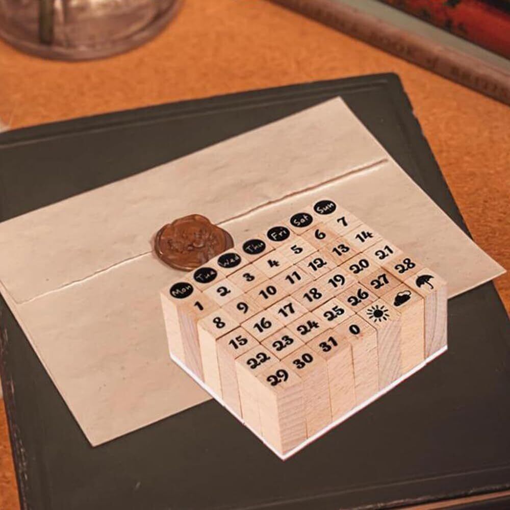 【日常の記録を楽しく!】: この木製スタンプセットは、42個の数字と曜日が含まれており、日記や手帳に自由に使えるアイテムです。手軽に楽しいデコレーションができ、毎日の記録がより充実したものになります!