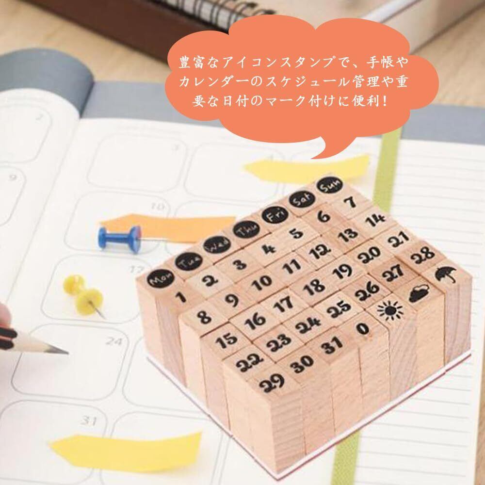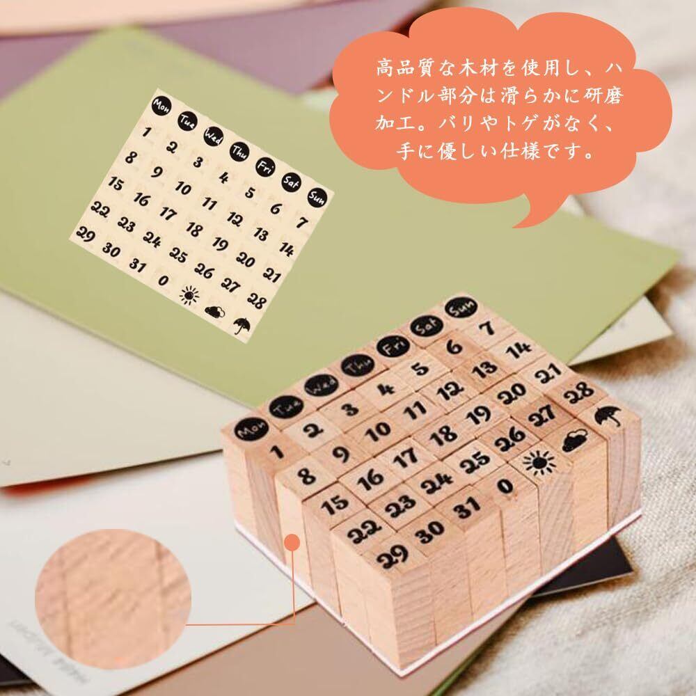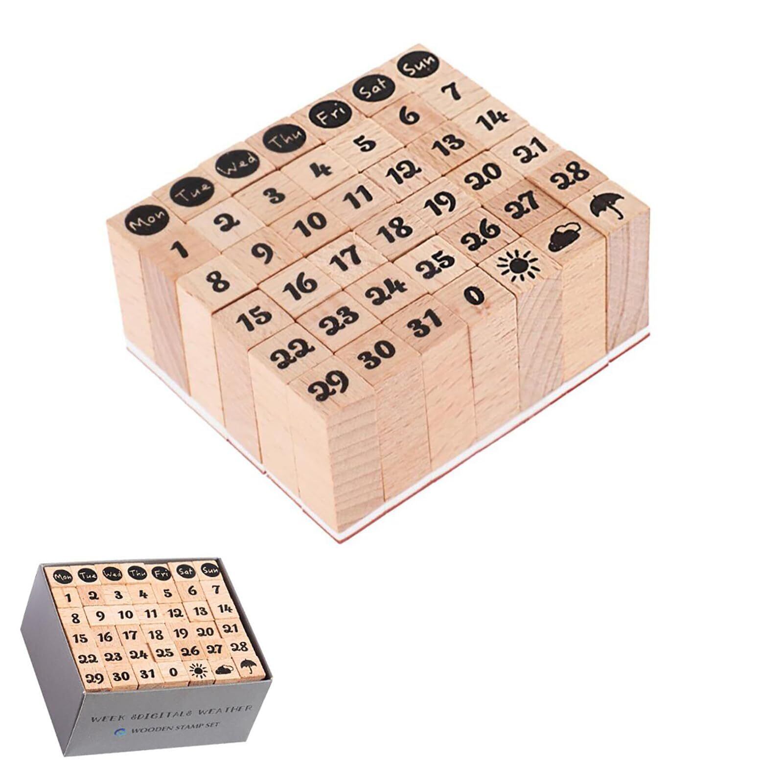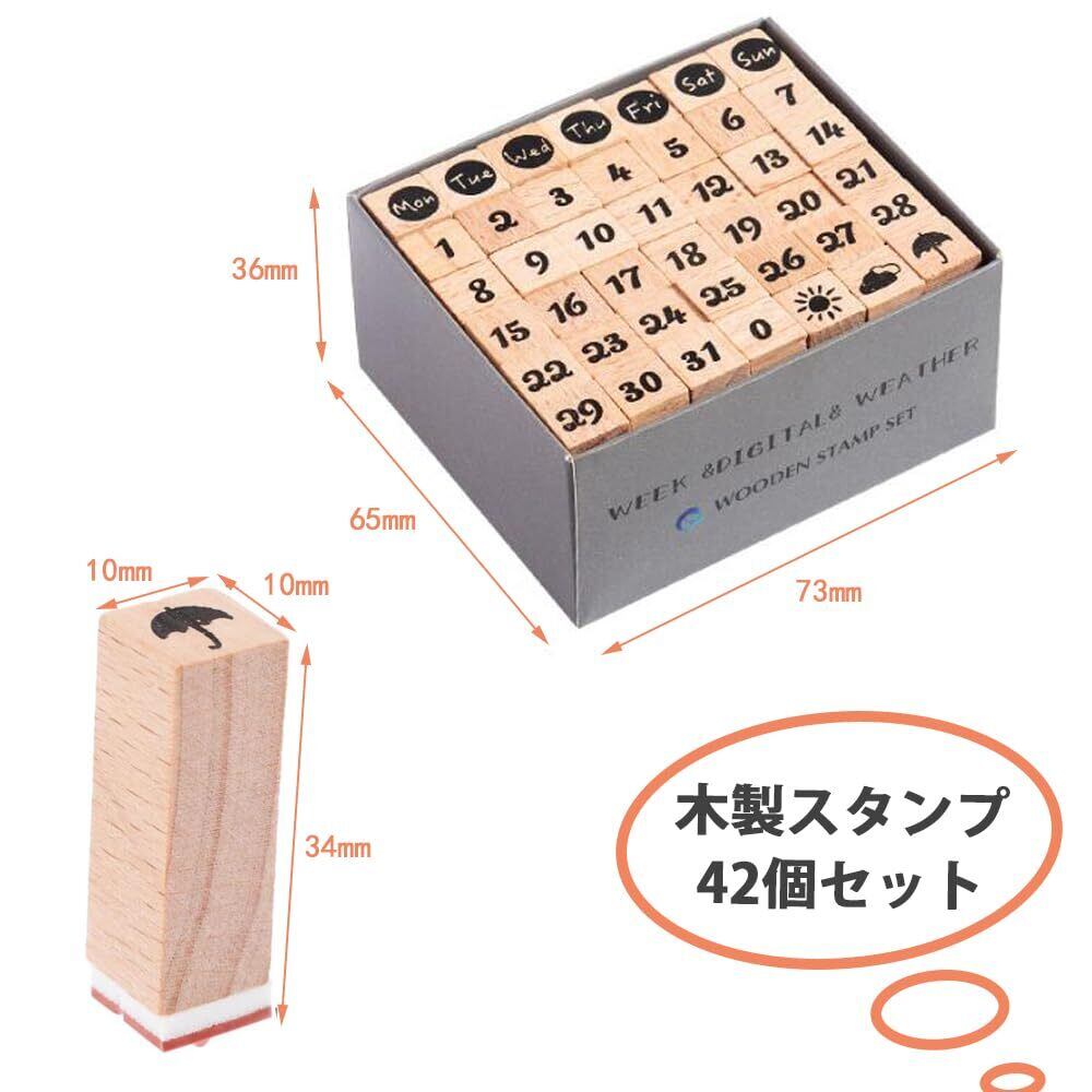 木製スタンプ 数字&曜日 42個セット 番号スタンプ 天気 日常 スタンプセット DIY 日記 手紙 カード 工芸品 スクラップブック 手帳用