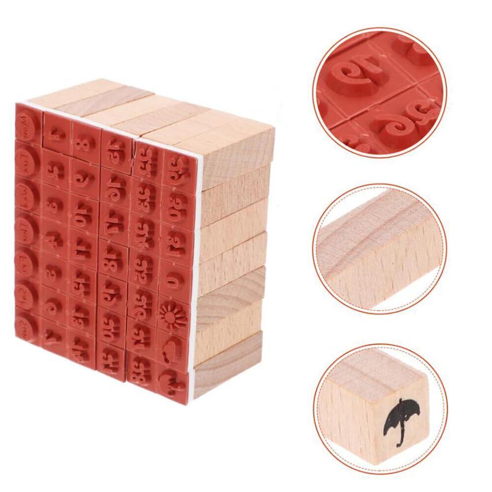 【在庫処分】木製スタンプ 数字&曜日 42個セット 番号スタンプ 天気 日常 スタンプセット DIY 日記 手紙 カード 工芸品 スクラップブック 手帳用