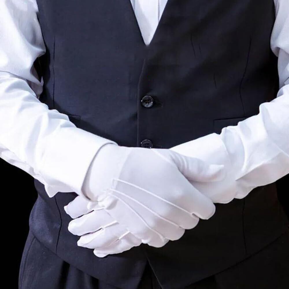 【多目的】冠婚葬祭や式典、モーニングなどの礼装用手袋としてだけでなく、接客業、警備員、警察、運転手など、外見の美しさが求められる様々な用途に適しています。手に持つだけでも素敵な装いが演出できます。