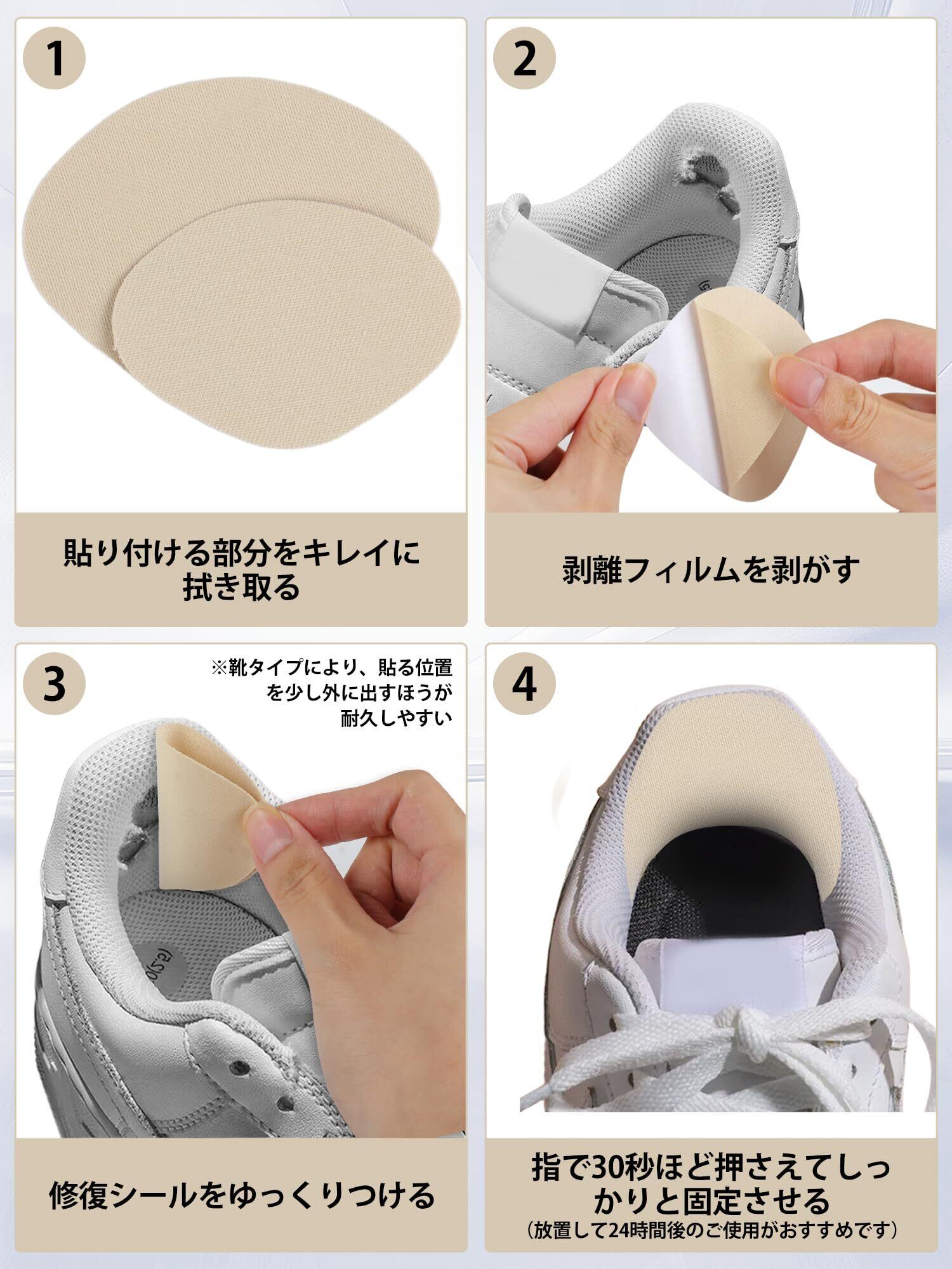 【シンプルで効果的な補修方法】: 使用方法はとても簡単。靴のかかと部分に貼るだけで、すぐに補修が完了します。傷や穴を隠すだけでなく、靴底の摩耗を防ぎ、あなたの靴を守る強力なパッチです。時間や手間をかけずに、手軽に靴の寿命を延ばしましょう!