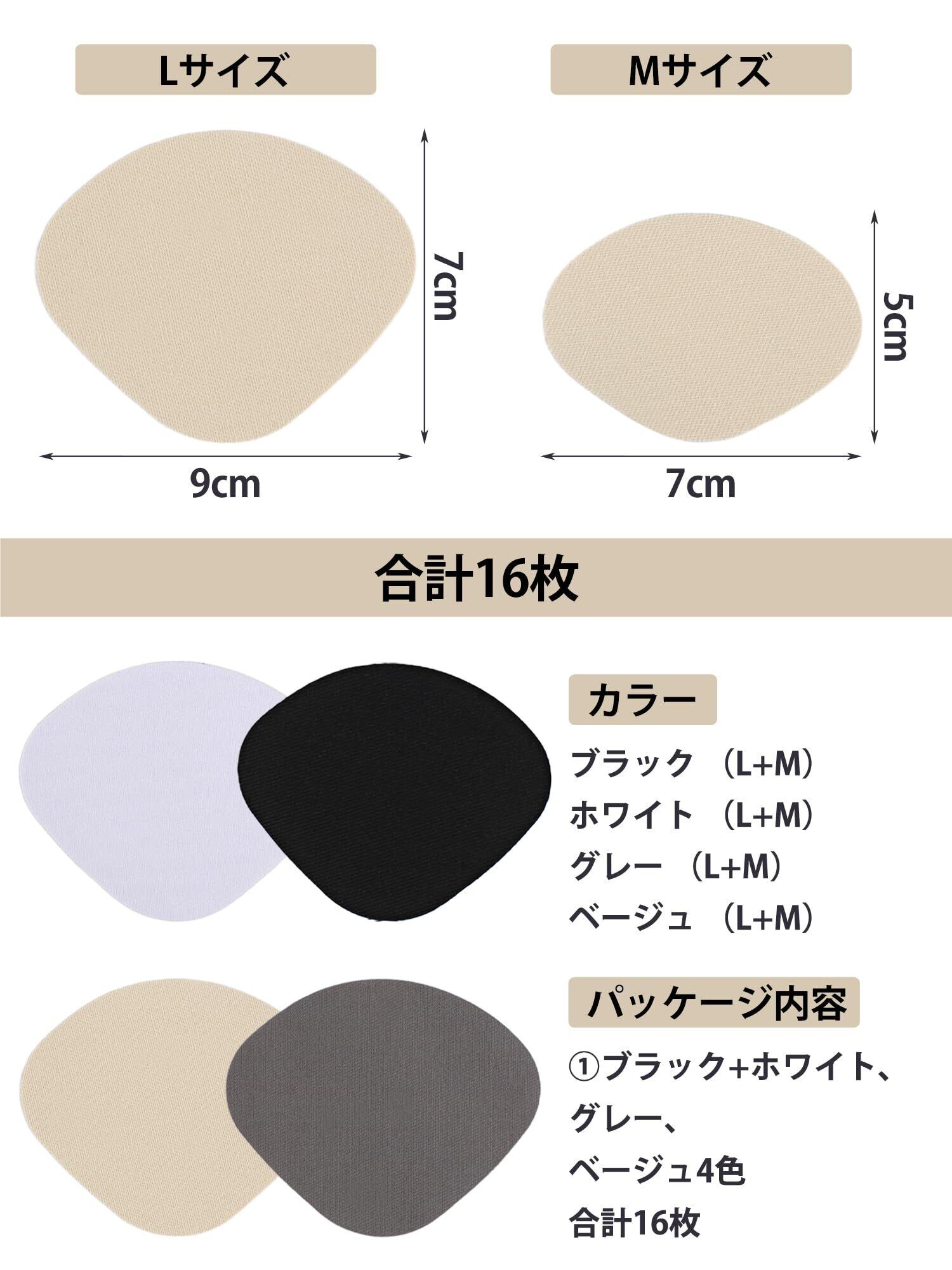 【薄型で靴に馴染み、よく合う】サイズは7cmx9cm(両足分)と5cmx7cm(両足分)、色それぞれ2足(4枚)あり、合計16枚セット。