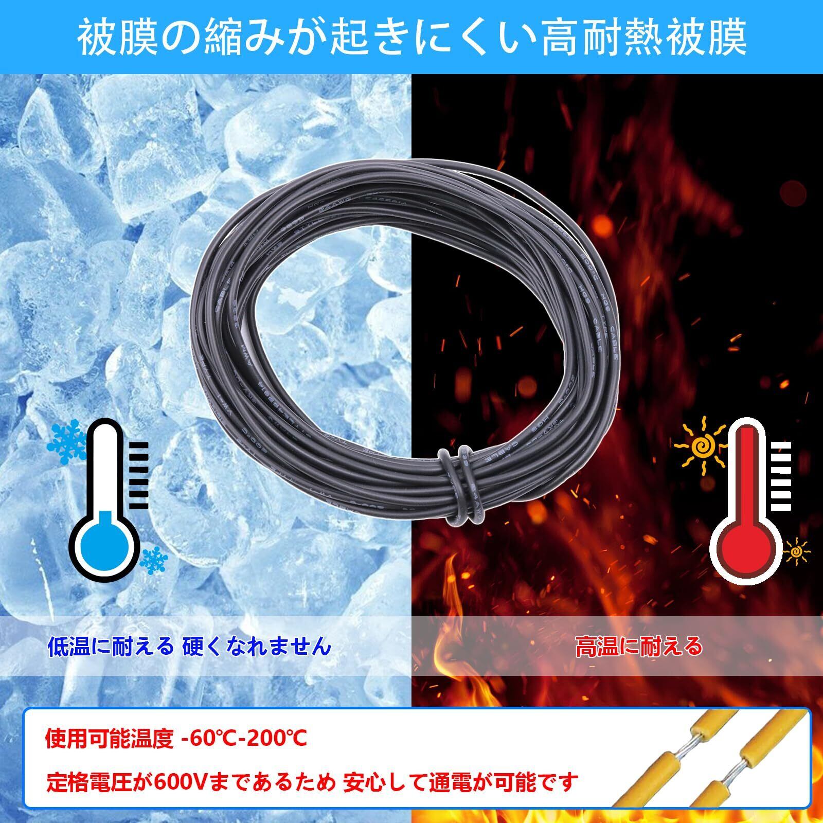 【高温耐性で安心】: 耐熱温度が200°Cまで対応していますので、熱による劣化の心配がありません。電子機器の設計や製作において高い耐久性を発揮します。シリカゲル絶縁によって、安全性も充実しています。
