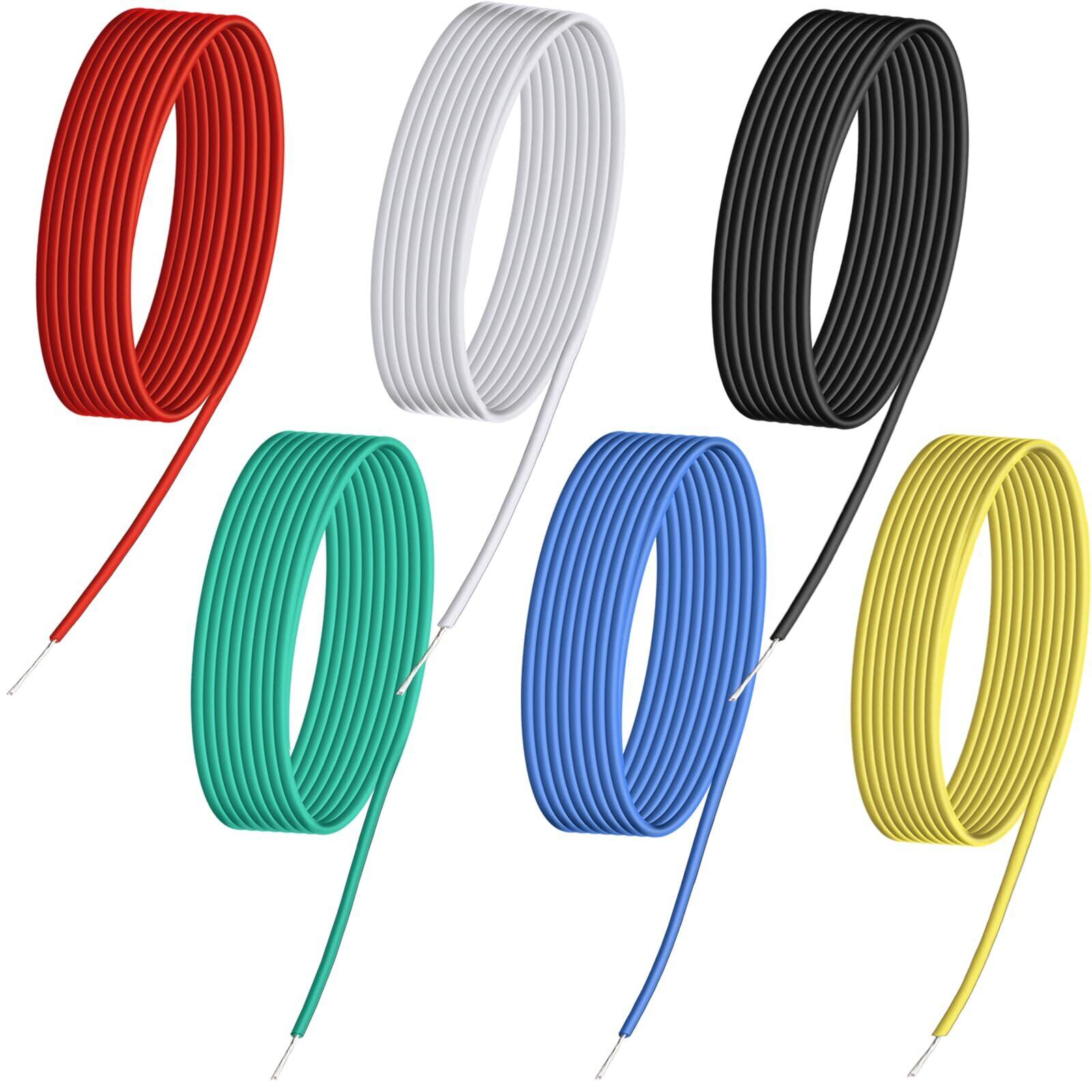 【在庫セール】電線ケーブル 電子配線 DIY電子電線 はんだ電線 AWG24 超柔らかい 電子工作電線 電子延長コード 耐熱200°C シリカゲル絶縁電線 産業開発用電子電線 電子導線 配線通し 電子リード線 DIY接続ワイヤ (6色/各5M)