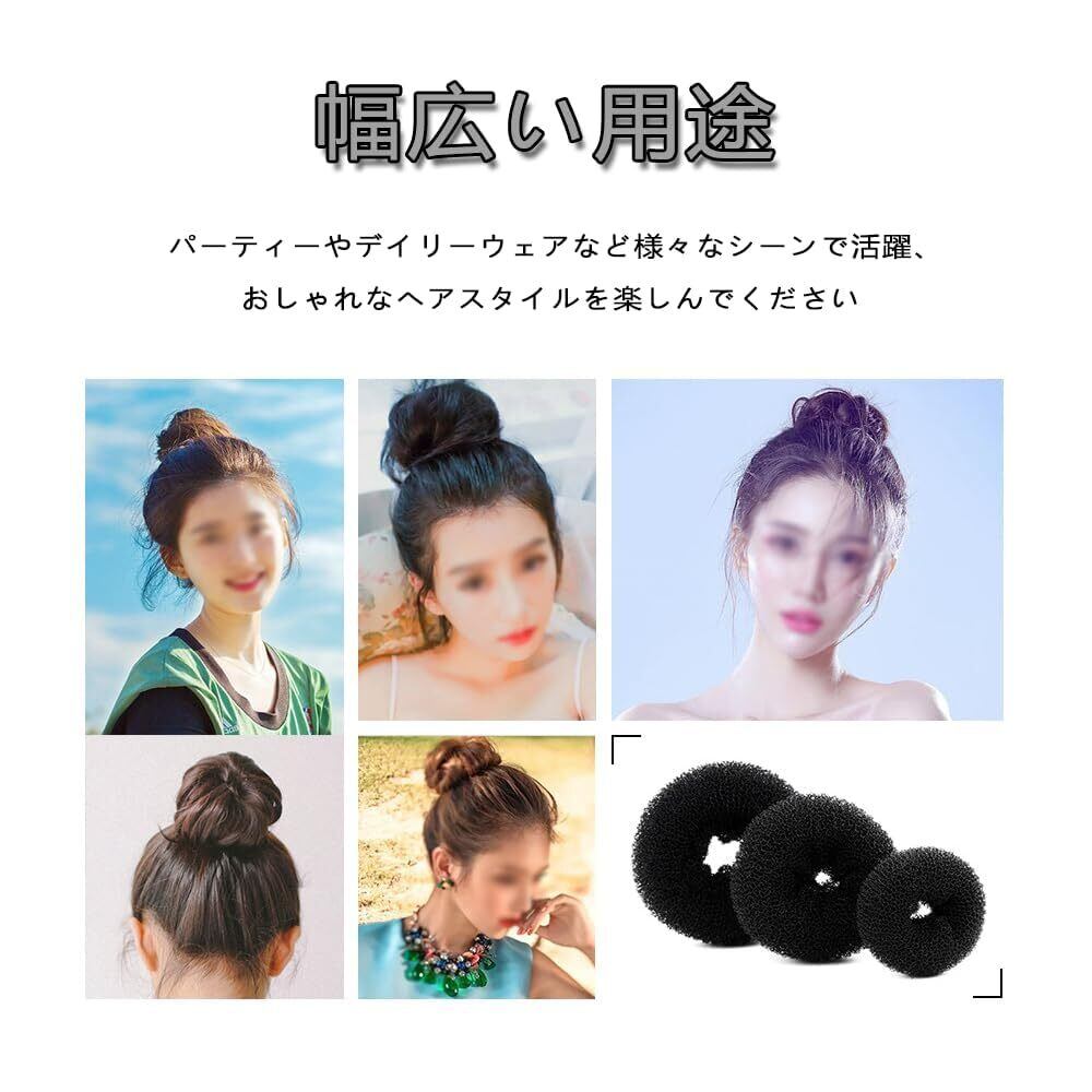 【3サイズのセットで多様なスタイルを!】: 小、中、大の3つのサイズが揃ったこのセットで、シーンに応じたさまざまなお団子ヘアが可能です。カジュアルな日常使いから、フォーマルな場所まで幅広く対応します。お好みに合わせて自由自在にアレンジしましょう!