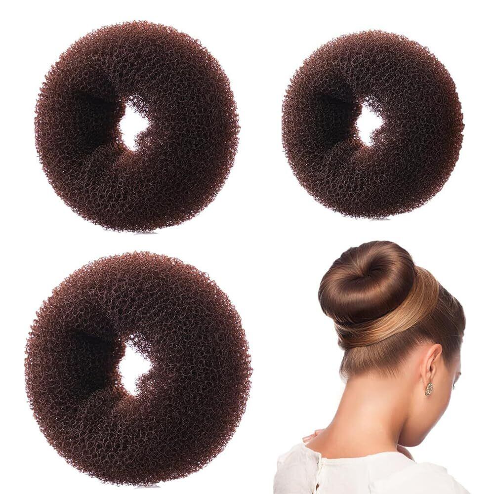 【在庫処分】YFFSFDC お団子ヘアーヘアアレンジ お団子ヘアメーカー ヘアピン ドーナツ お団子グッズ お団子スポンジ まとめ髪 簡単ヘアアレンジ 実用的で巧妙 小、中、大 3点セット (ブラウン)