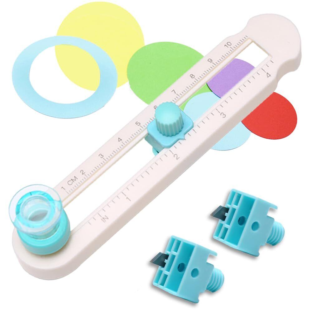 円形カッター サークルカッター 替刃 2点入り ペーパー (直径2cm~20cm 対応) つかいやすい コンパスカッター 丸く切る 目盛り付き 必要なサイズを簡単に調整可能 使いやすい コンパクト 持ち運び便利 学生用 手作り用 (サークルカッター+替刃2個)