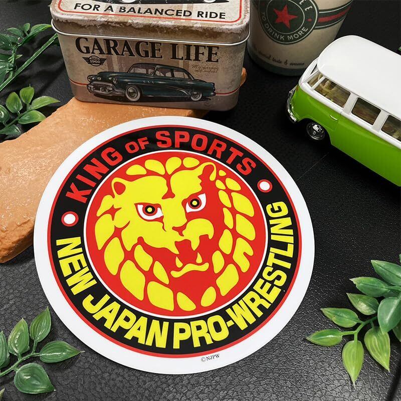 新日本プロレスのシンボル、ライオンマークの丸いロゴのマグネットステッカーです。鮮やかな色合いが遠目からもバッチリ目立ちます!車の目印にも◎