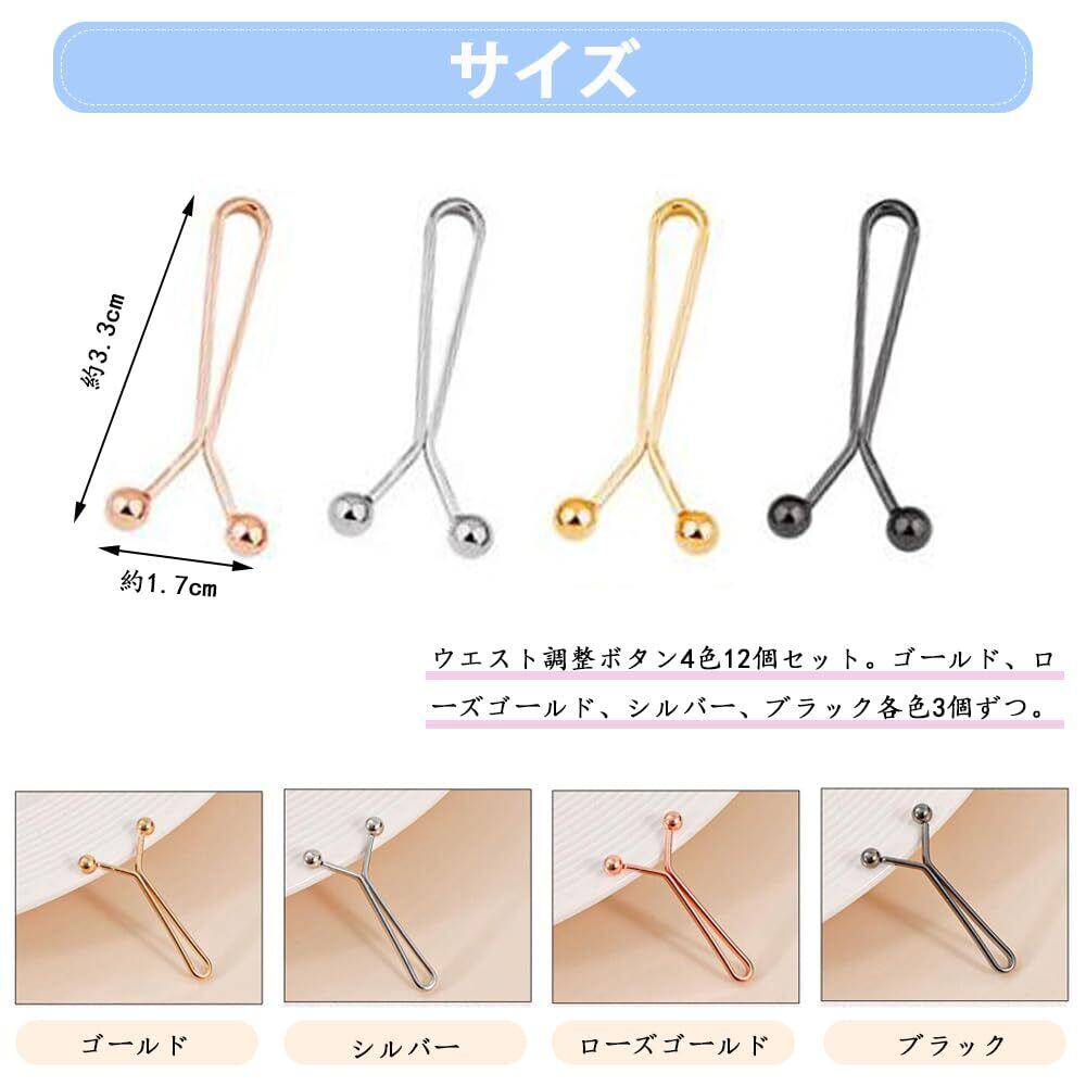【セット内容】ウエスト調整ボタン4色12個セット。ゴールド、ローズゴールド、シルバー、ブラック各色3個ずつ。