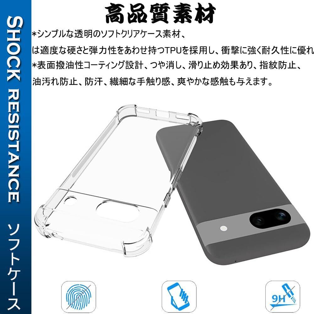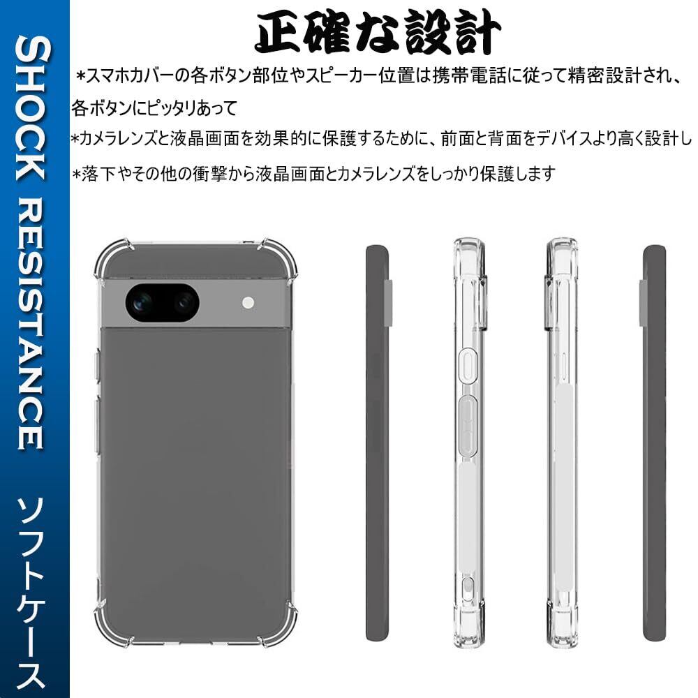 『全面保護』Google Pixel 8A 用のケース ピクセル8A 用の保護カバー 薄型 TPU材質 『四隅がエアクッション構造』 耐衝撃 エクスペリア ケース スマホケース 黄変防止/滑り止め/擦り傷防止/柔軟/光沢感/軽·薄/透明