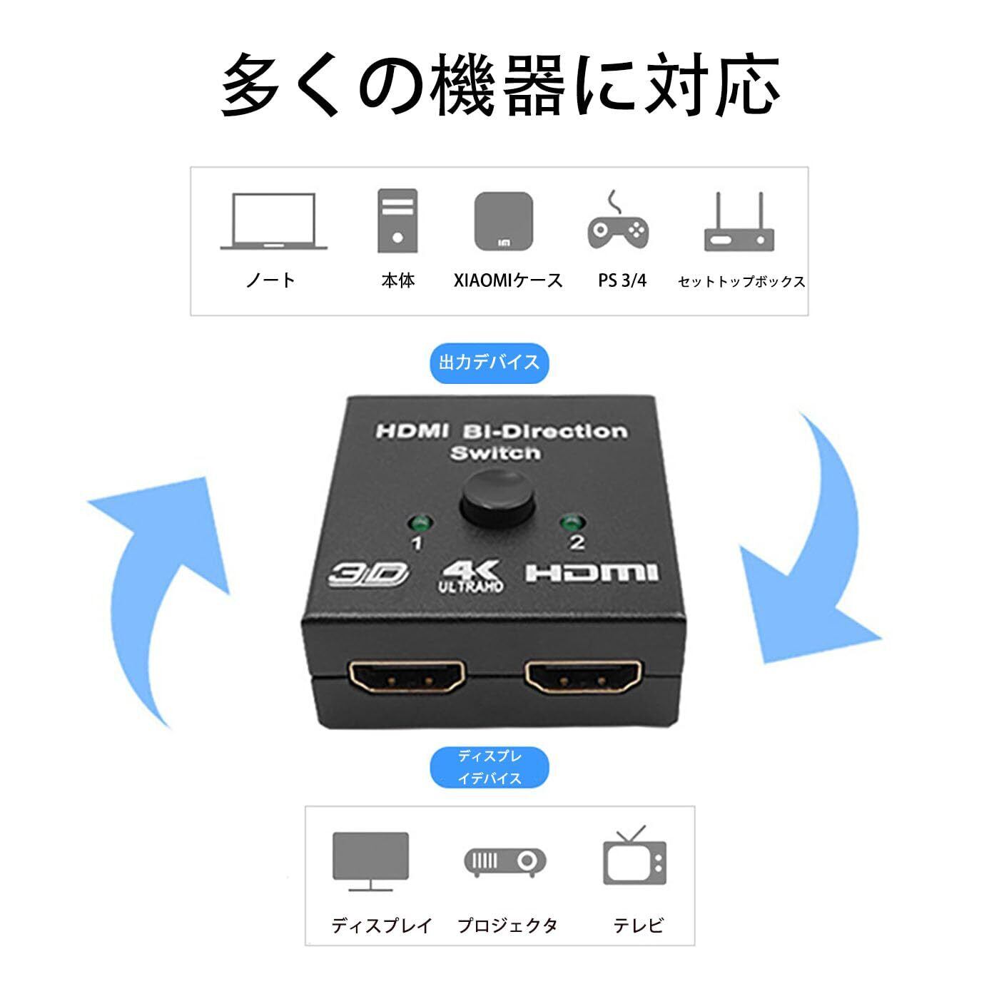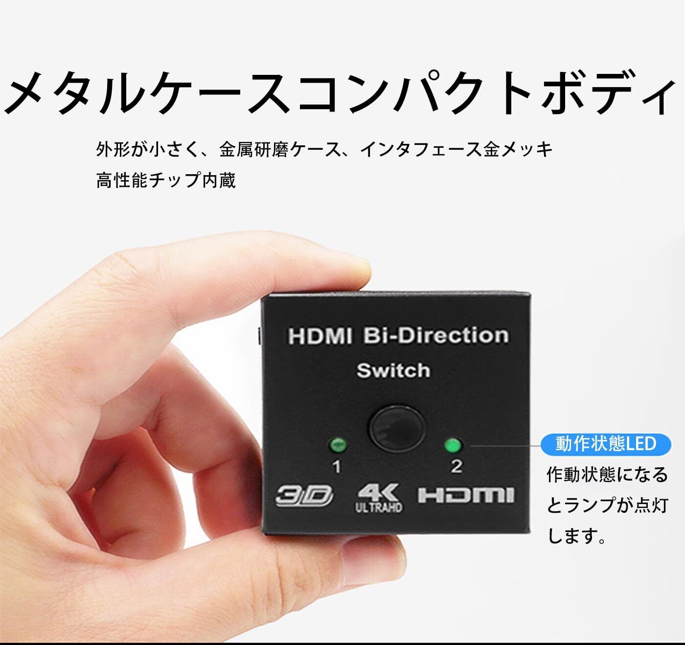【双方向で便利な設計!】: 双方向で1入力2出力、または2入力1出力に切り替え可能。これにより、複数のデバイスを簡単に接続できます。手動での切替ができ、使用しないデバイスの電源を気にする必要がありません。