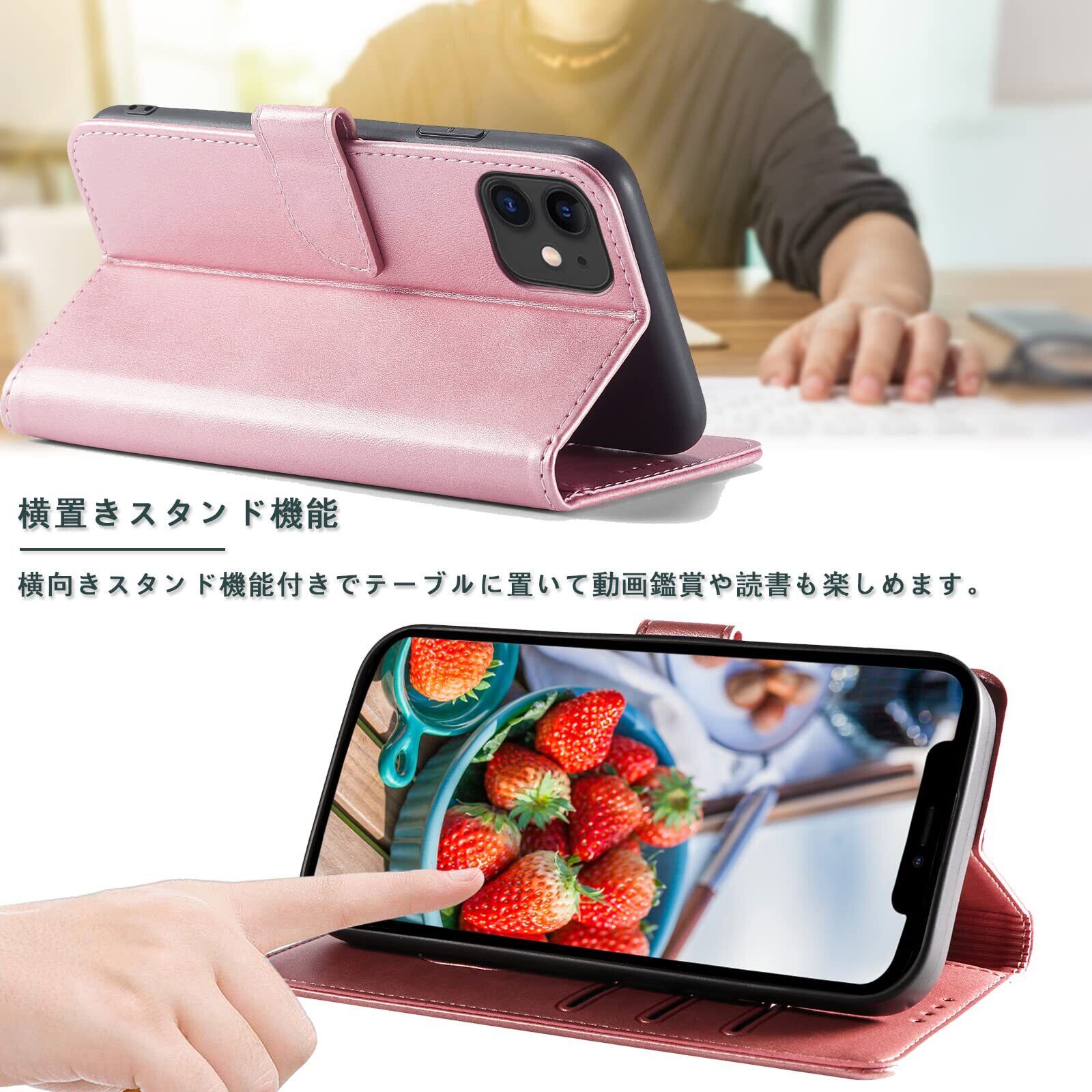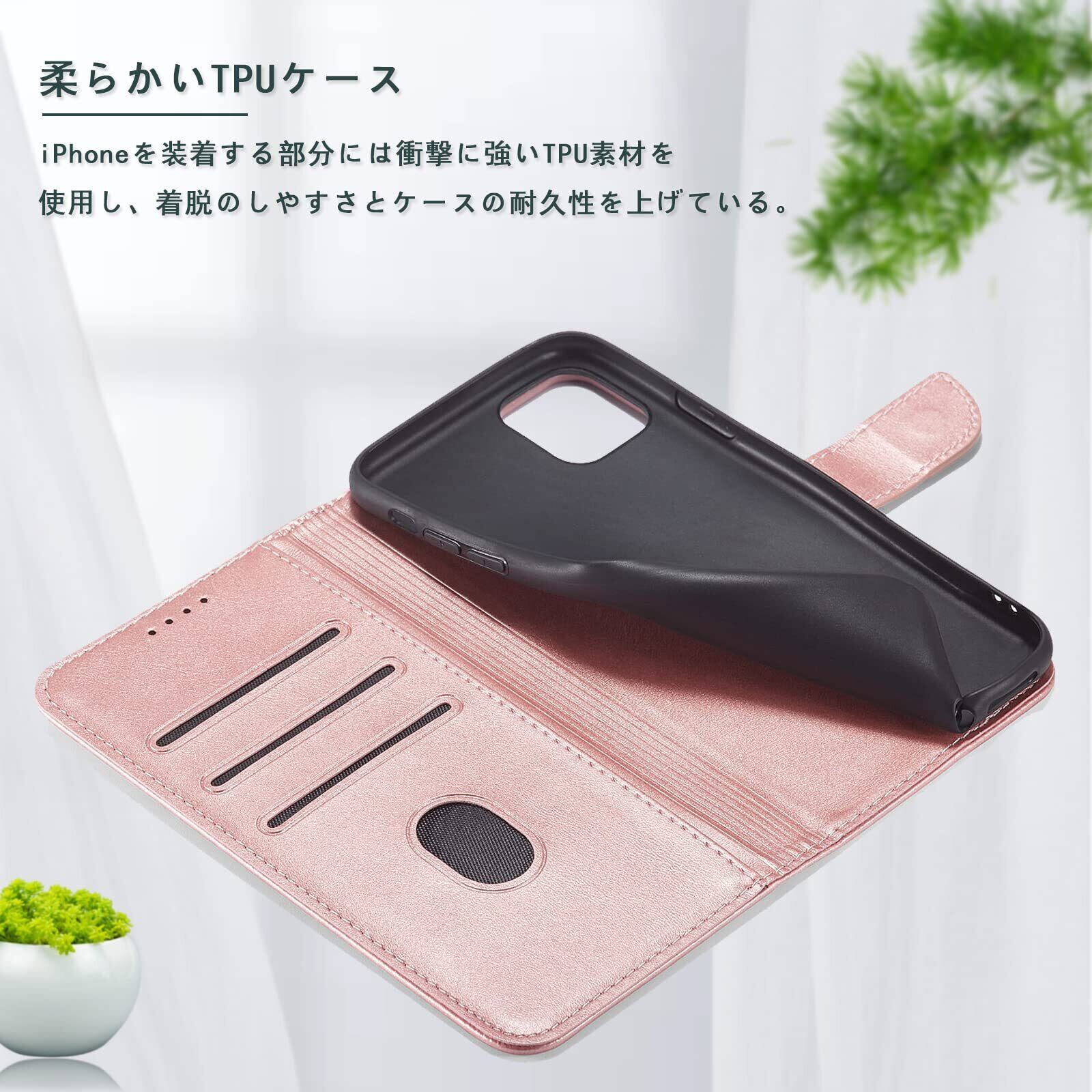 【在庫セール】iPhone 11 ケース 手帳型 スマホケース 手帳型 携帯カバー レザー 軽量 薄型 耐衝撃 耐摩擦 全面保護 マグネット式 カード収納 スタンド機能 iphone11ケース 6.1 インチ対応(バラゴールド)