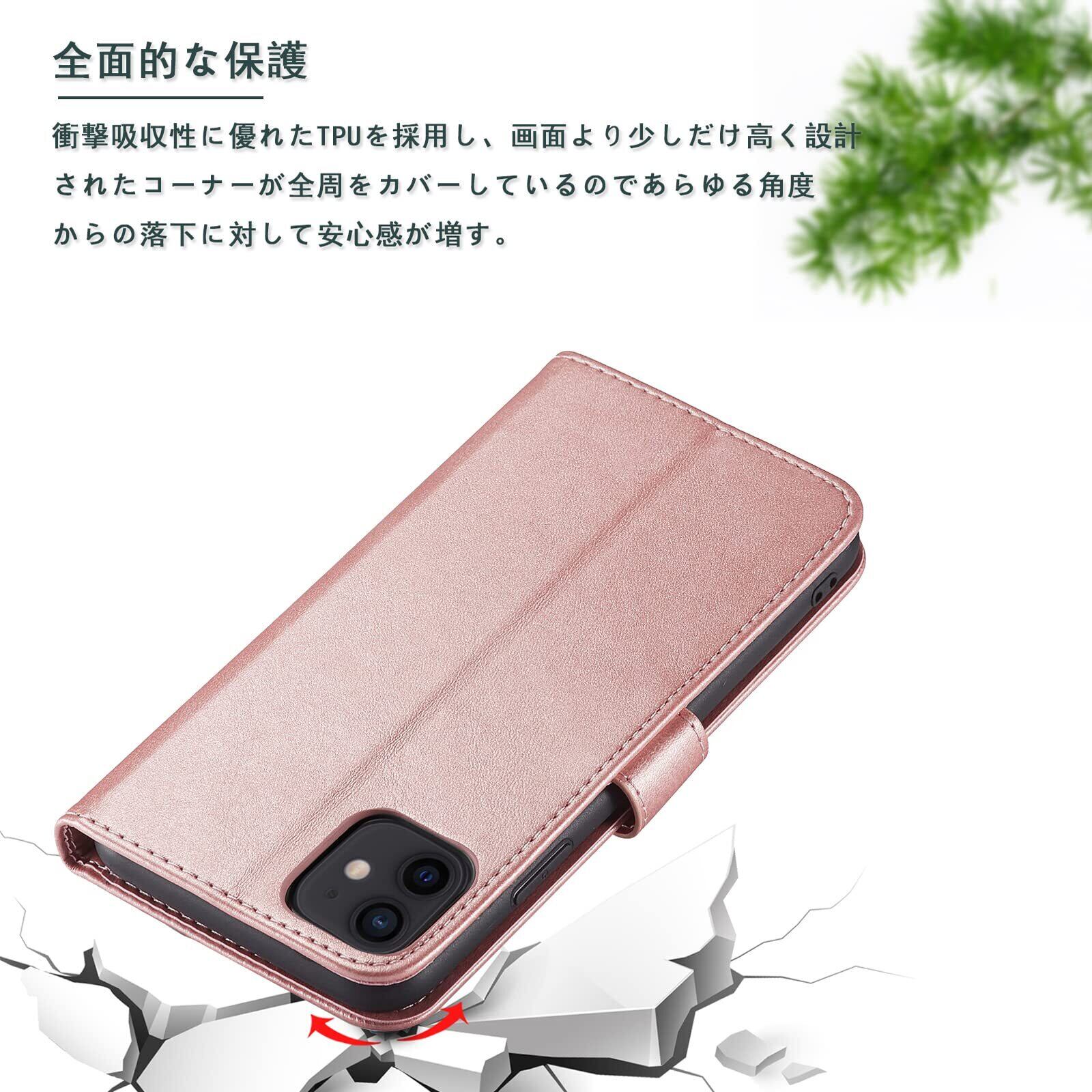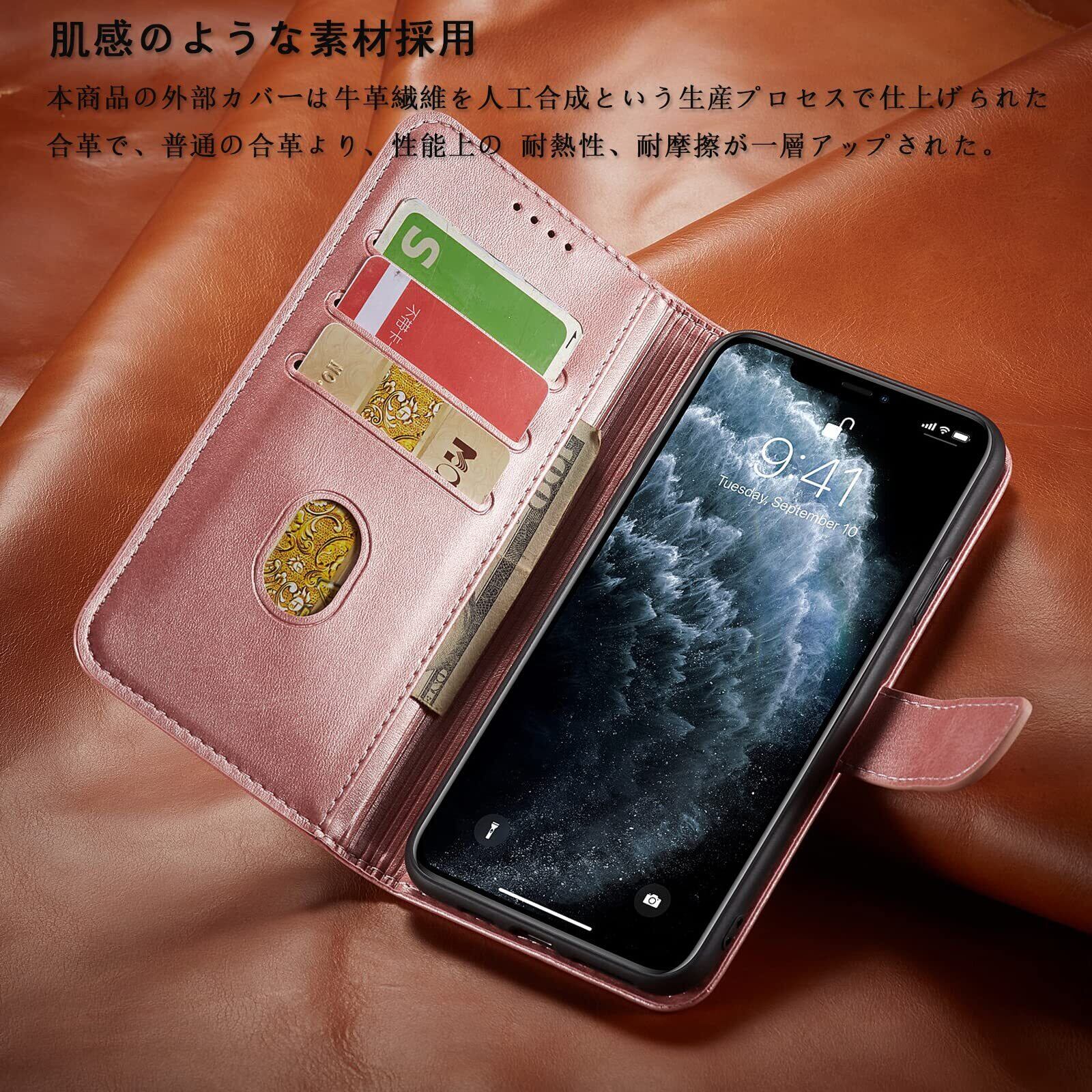 iPhone 11 ケース 手帳型 スマホケース 手帳型 携帯カバー レザー 軽量 薄型 耐衝撃 耐摩擦 全面保護 マグネット式 カード収納 スタンド機能 iphone11ケース 6.1 インチ対応(iPhone11, バラゴールド)