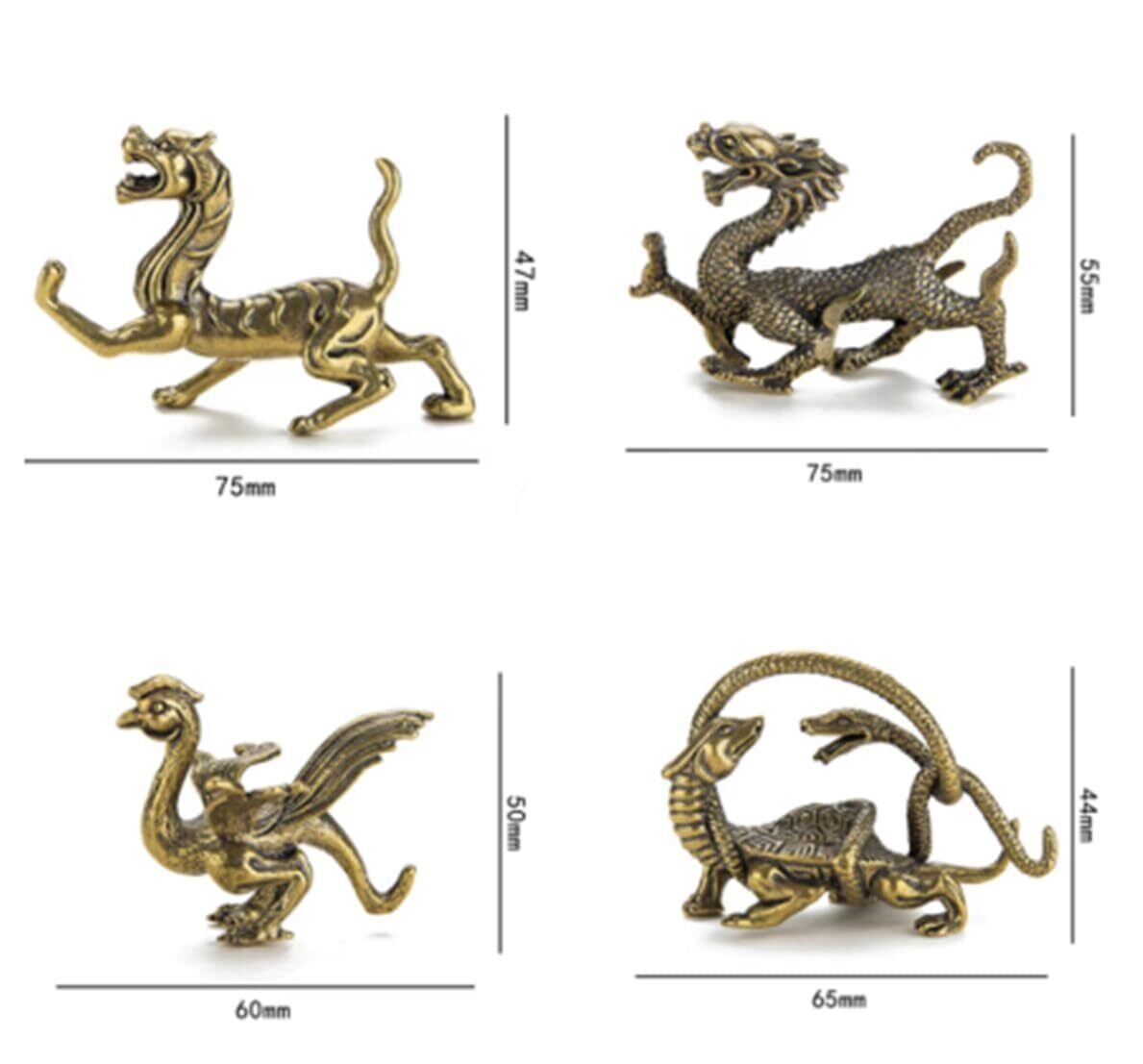【特価セール】風水グッズ 銅製四神獣 青龍 白虎 朱雀 玄武 置物 ミニサイズ 四神相応 霊獣 東西南北 インテリア 風水雑貨 風水アイテム 4個セット