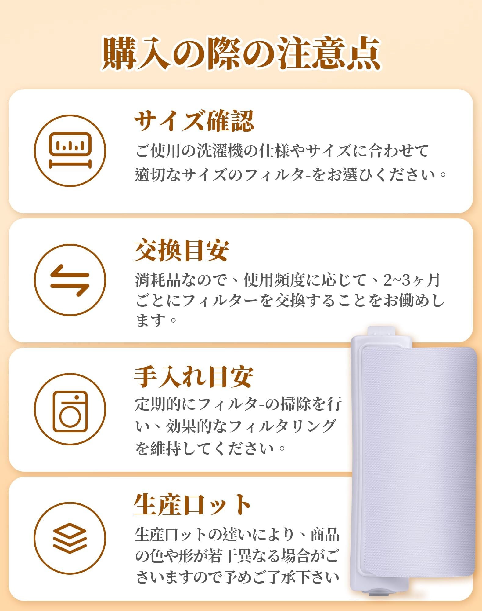 【簡単取り付け、安心の交換用フィルター!】: 交換用フィルターとして設計されているため、取り付けが非常に簡単です。特別な工具は不要で、誰でも手軽にご使用いただけます。定期的にフィルターを交換することで、洗濯機の性能を維持し、長持ちさせることができます。