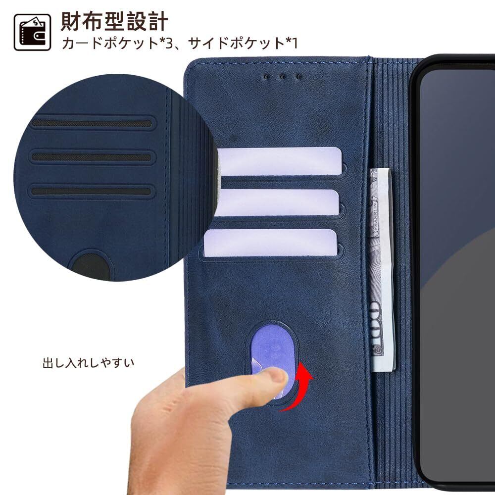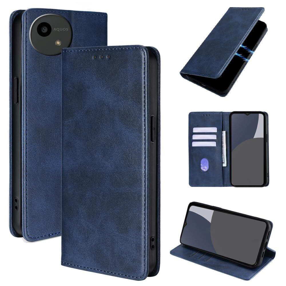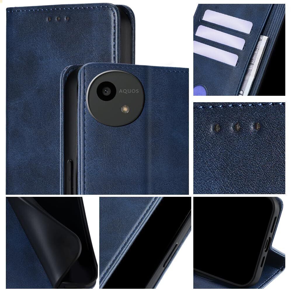 【在庫セール】AQUOS wish4 ケース 手帳型 4枚 カード収納 アクオス ウィッシュ4 財布型 カバー SUGOIDAN 携帯ケース カードポケット付き カード レザー スタンド機能 ストラップホール付き マグネット内蔵 耐衝撃 全面保護(ブルー) | gsmshop