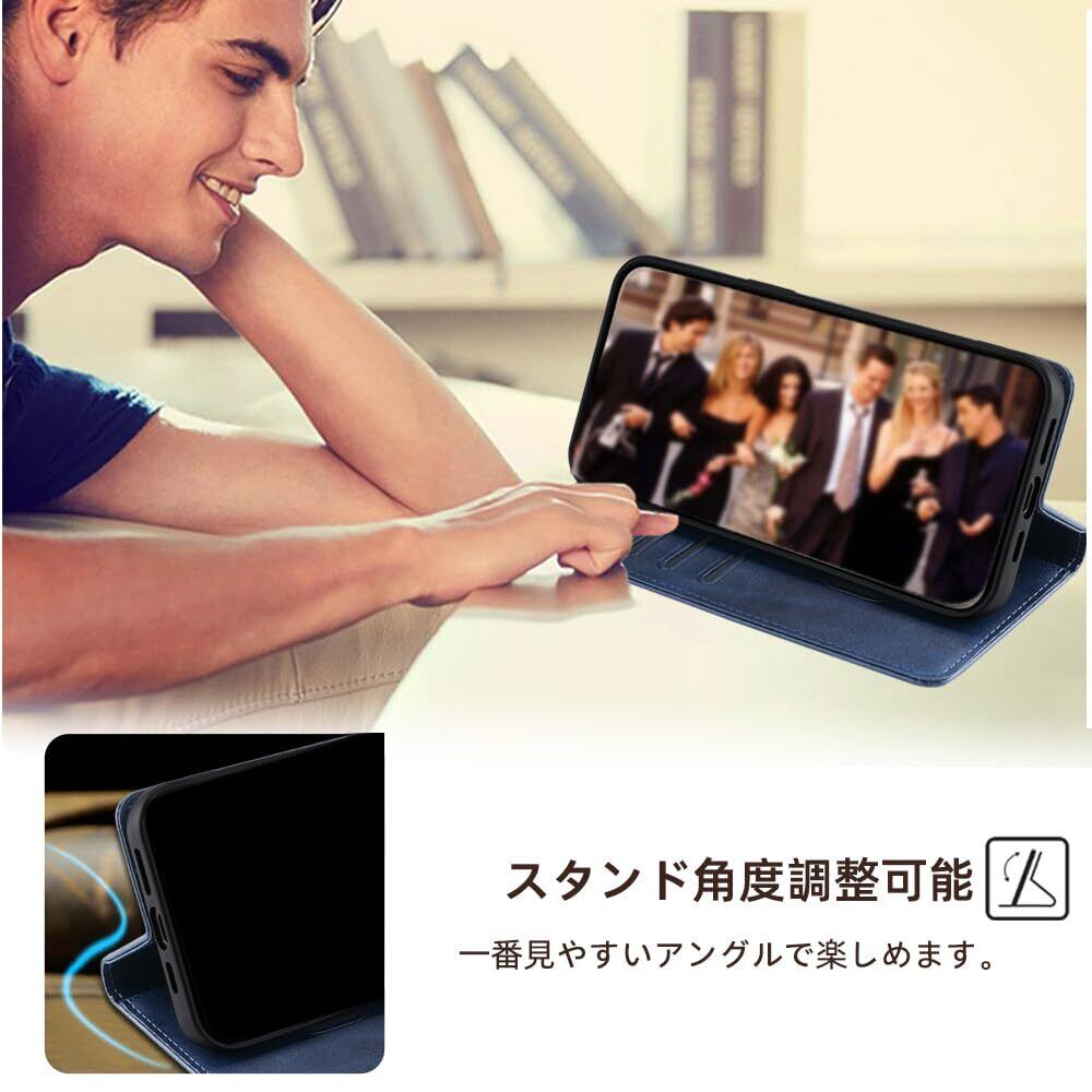 「スタンド機能&装着便利」レザーカバーの内面にソフトケースで装着簡単、素材には合皮レザーが使われており、おしゃれなデザインが特徴です。さらに、ケースを折って立たせることで、スマホスタンドとしても利用することができます。