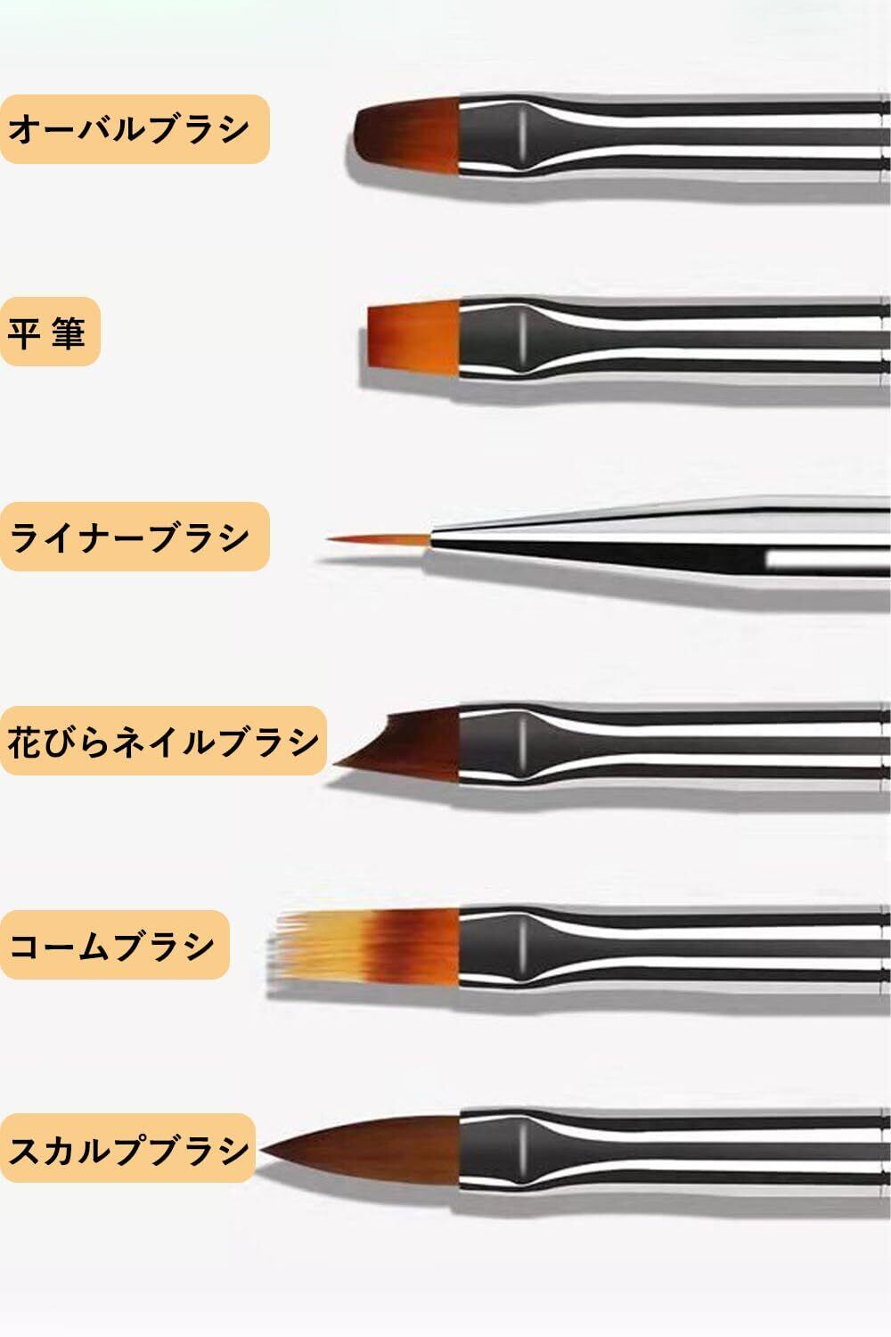 ネイルブラシタイプ ライナーブラシ、ファンブラシ、ラウンドブラシ、アングルブラシ、ドッティングツール